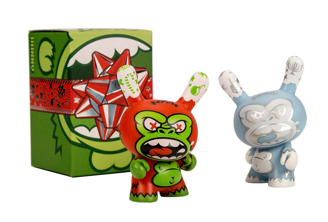 My latest colaboration with Kidrobot has finally released. This year I got to design the 3 Inch "Holiday" Dunny and we went with my classic MAD APE design in 2 variant colors.