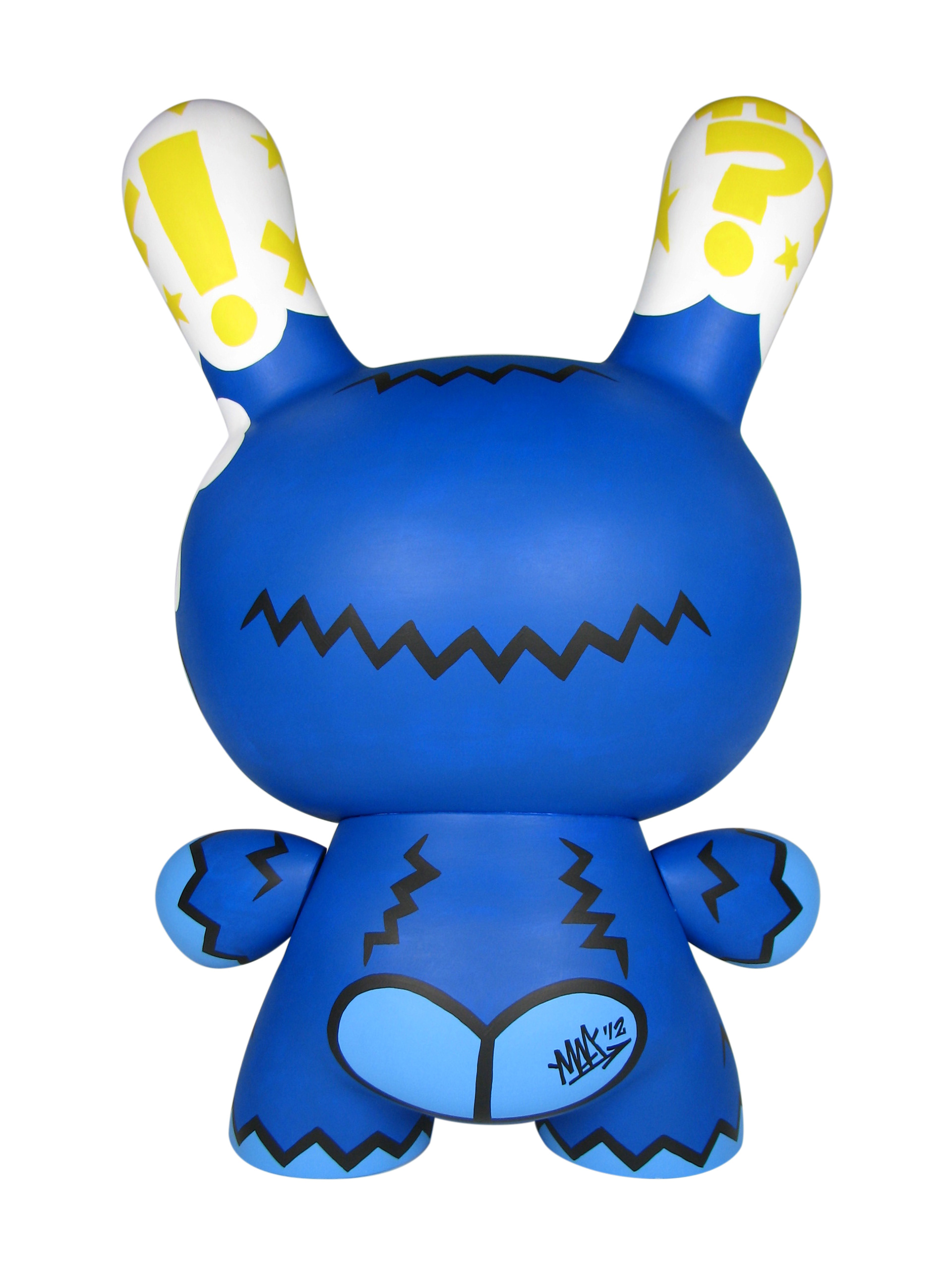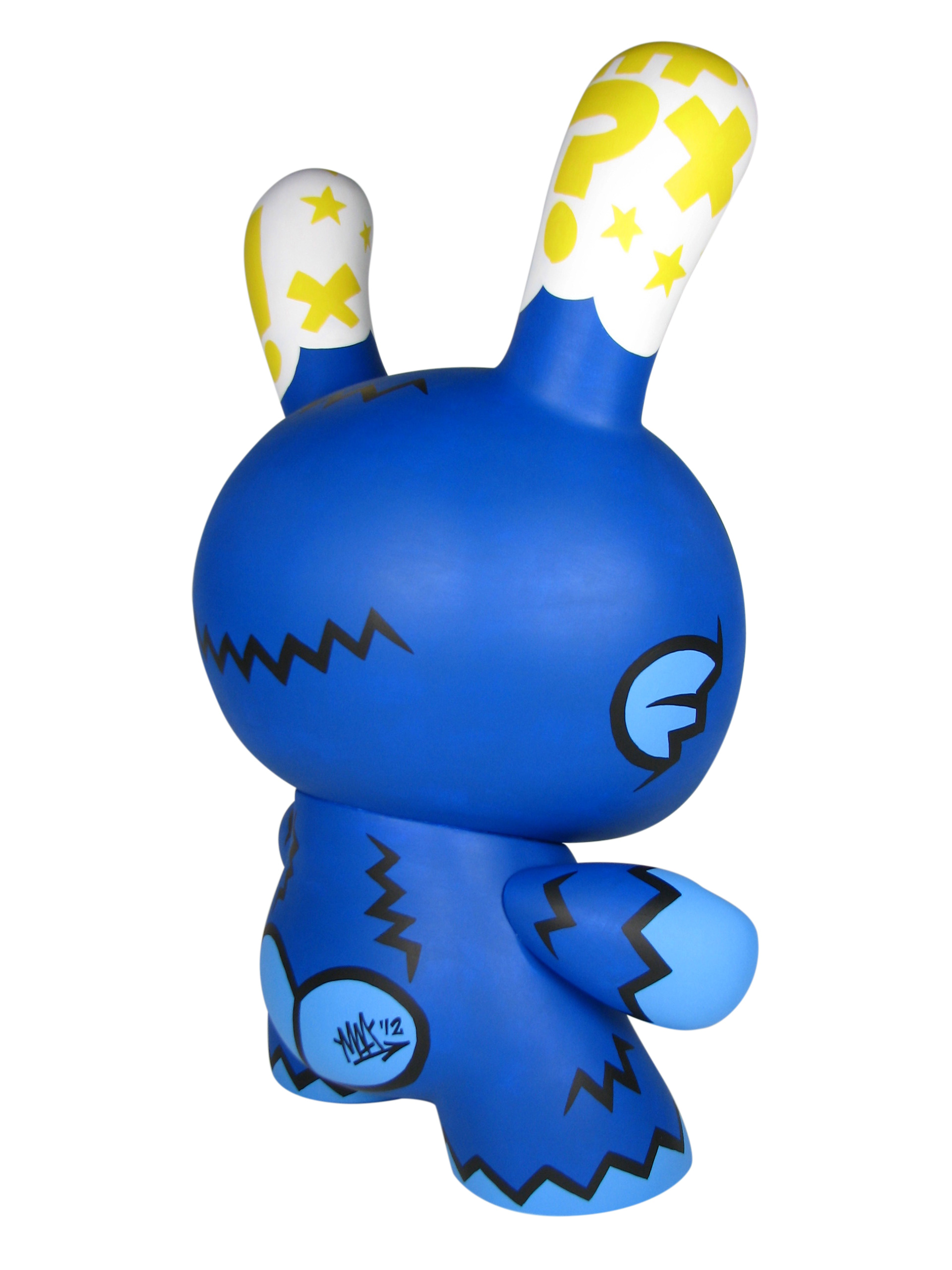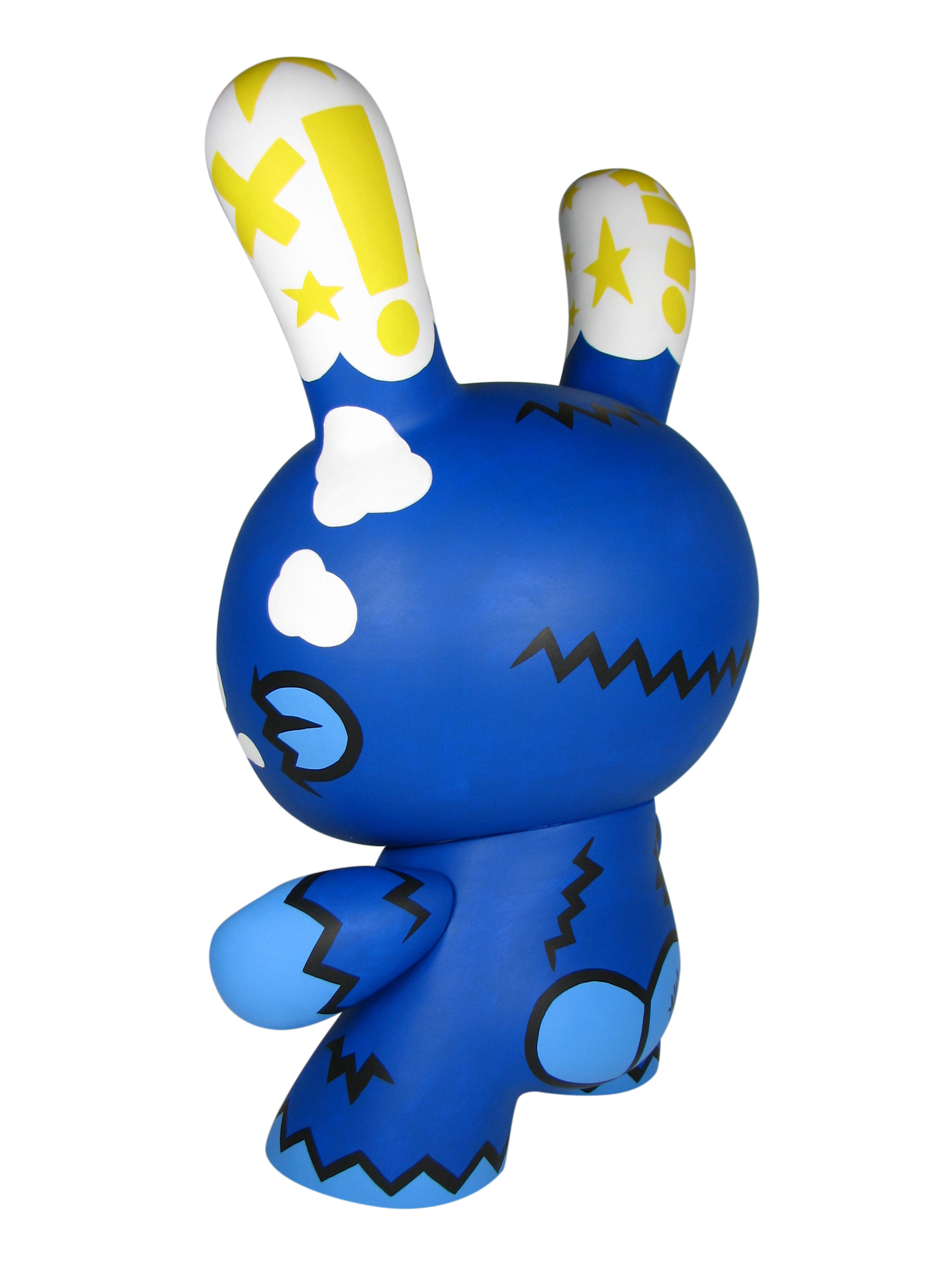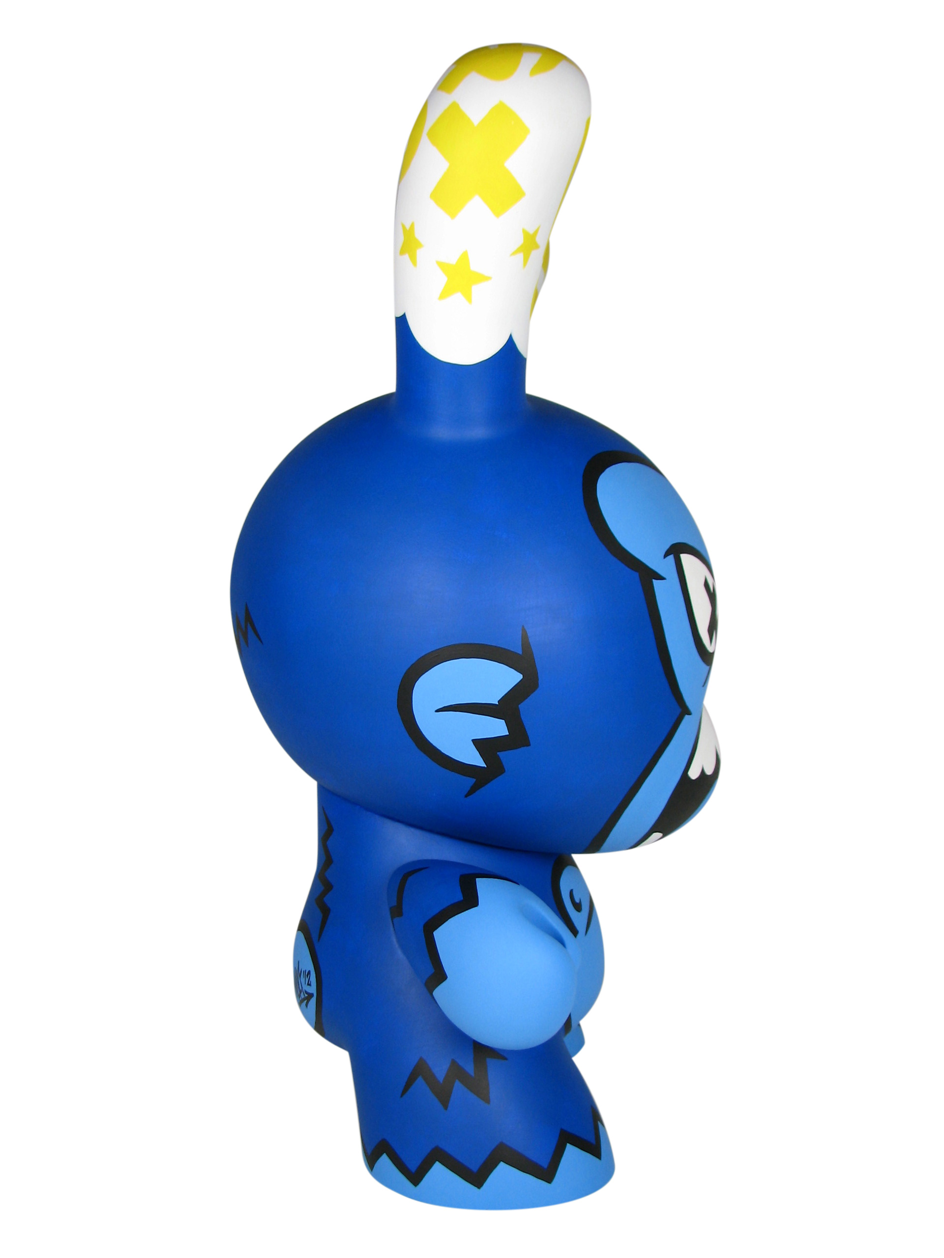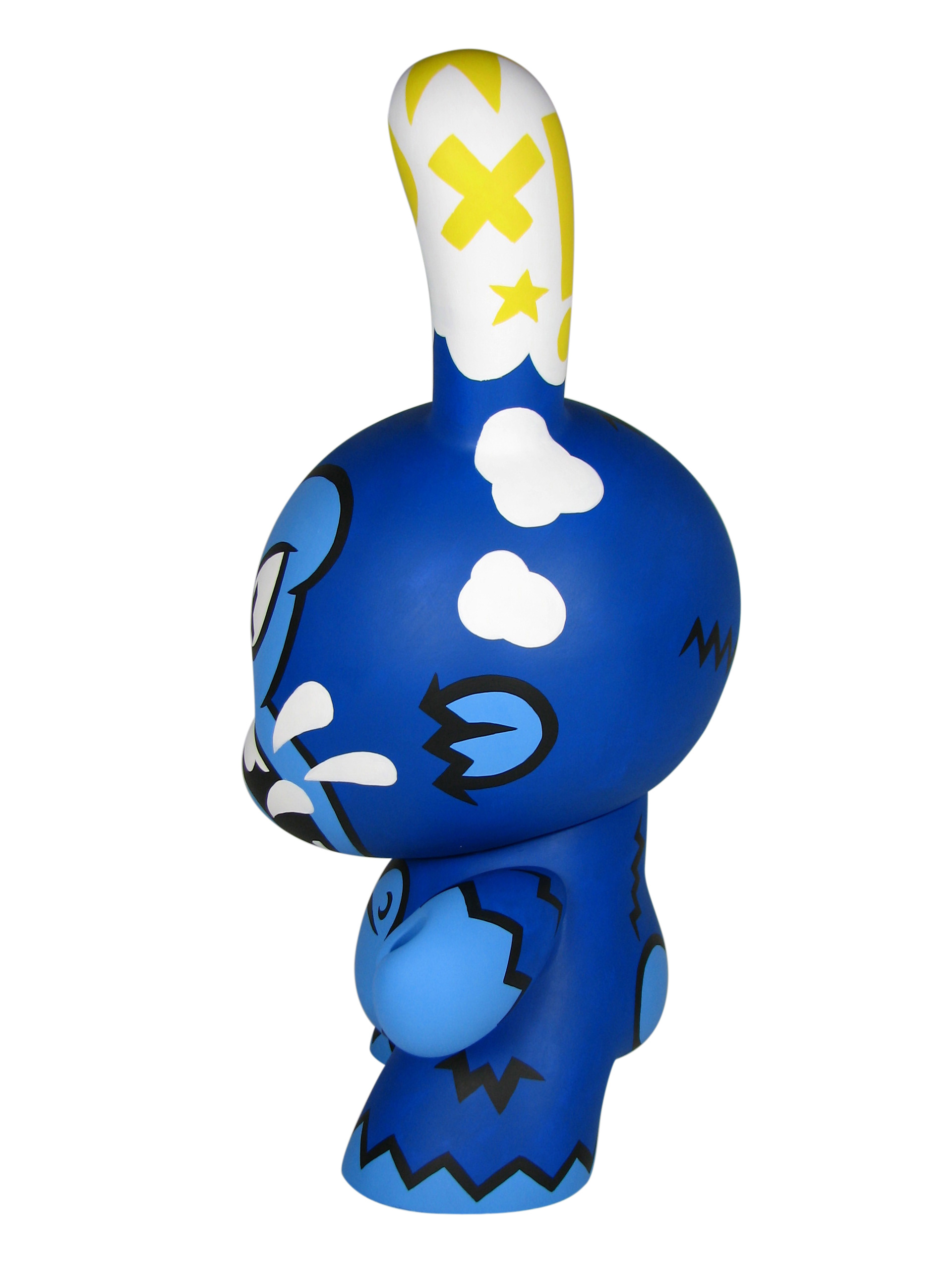 A series of 3 custom painted 20in Dunny's. "White" was for Kidrobot's 10yr Anniversary Auction. "Blue" was a private commission. "Black" is available for sale through my store.