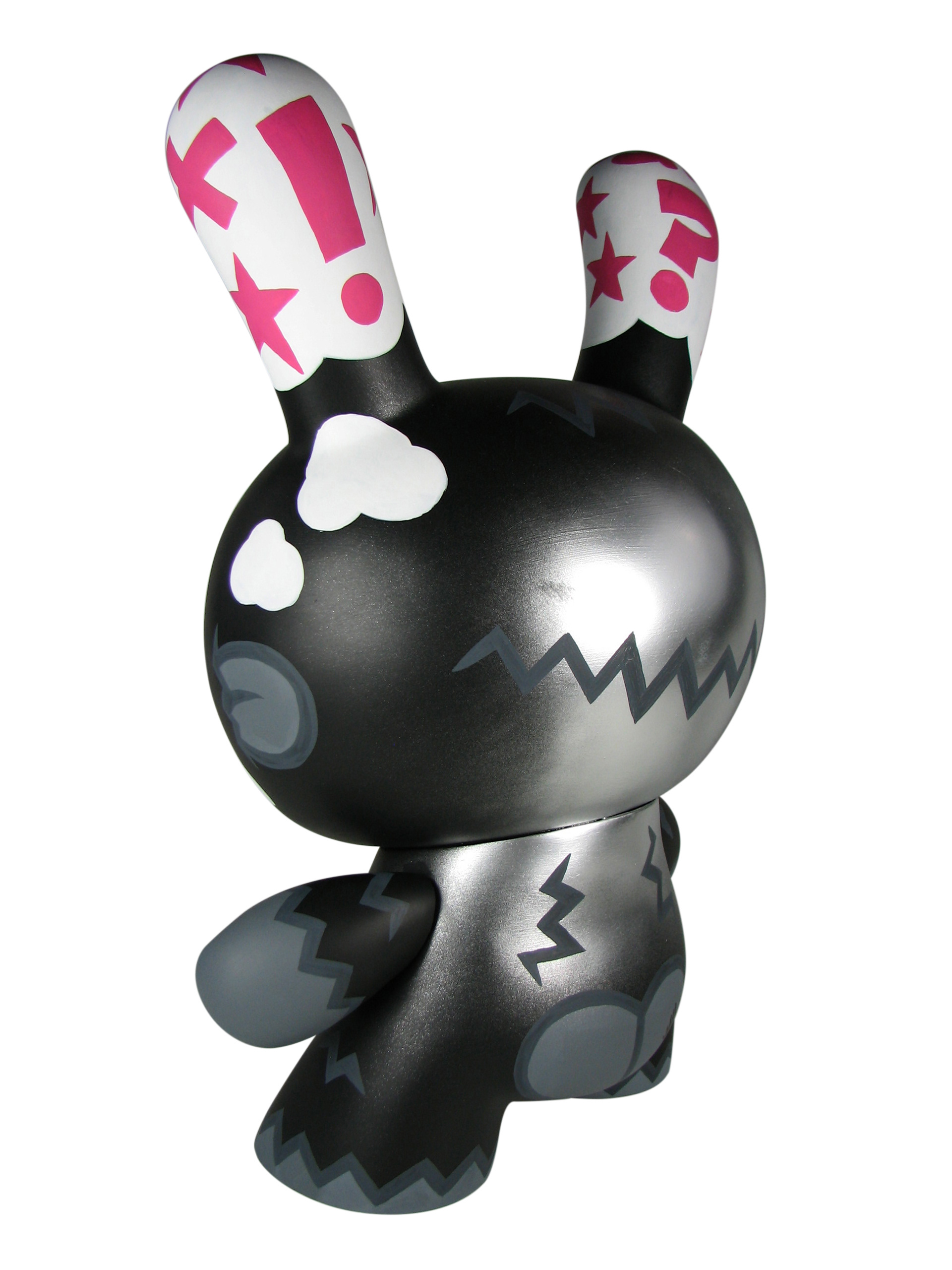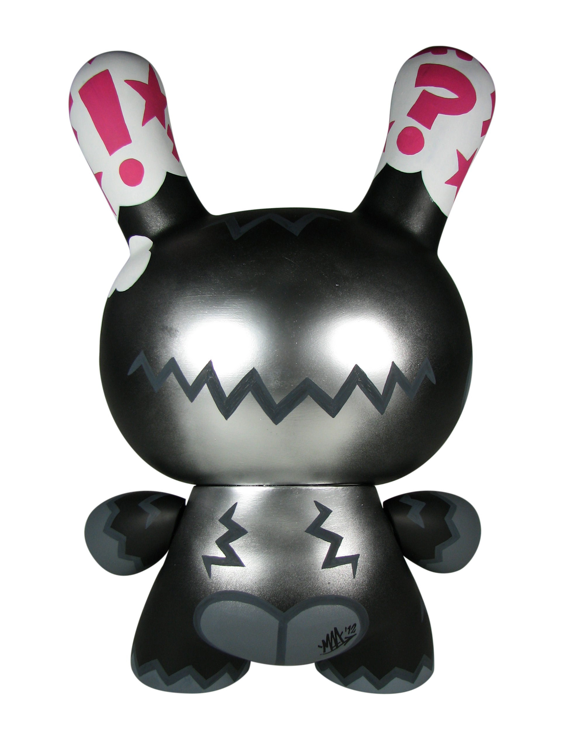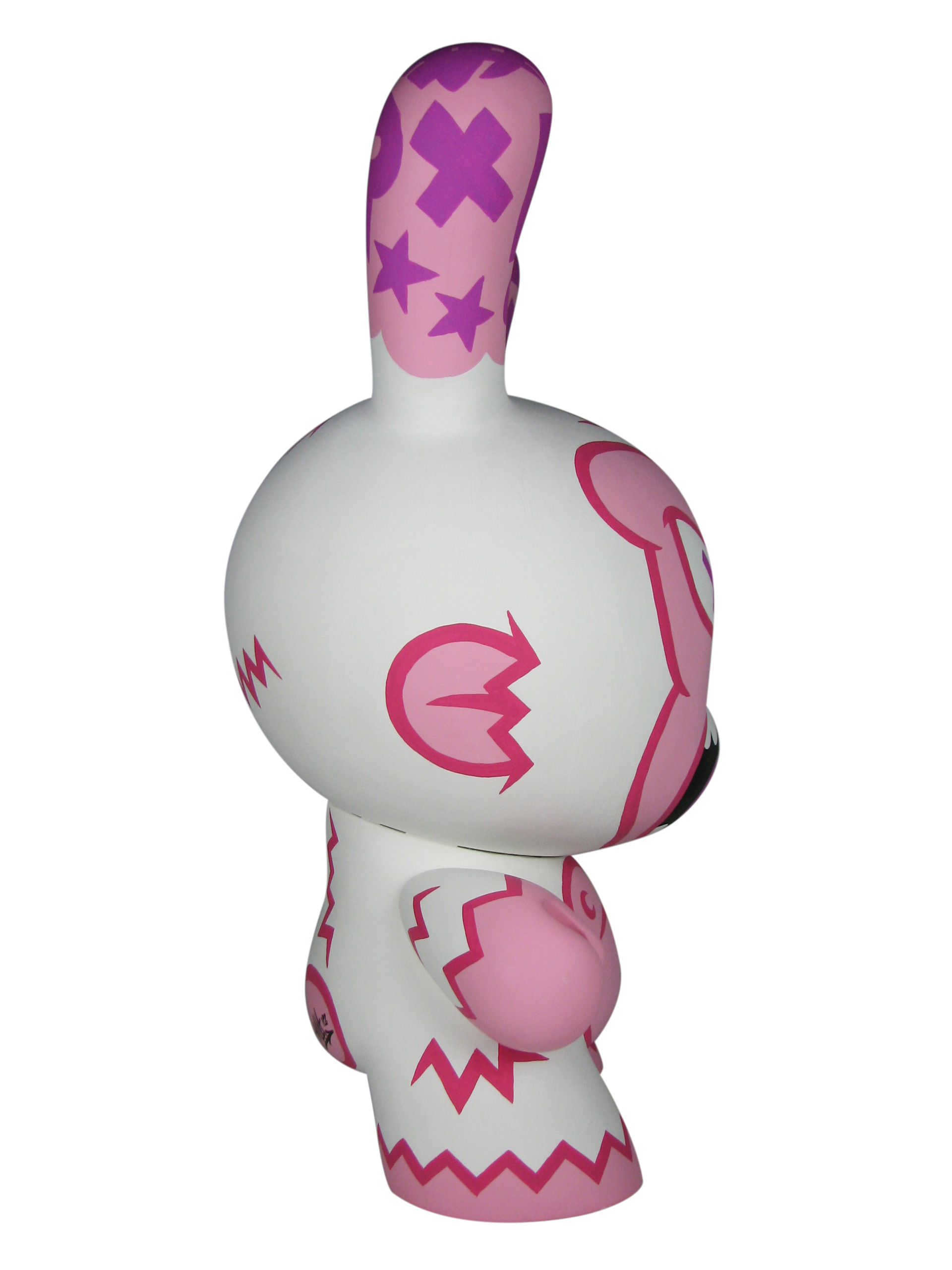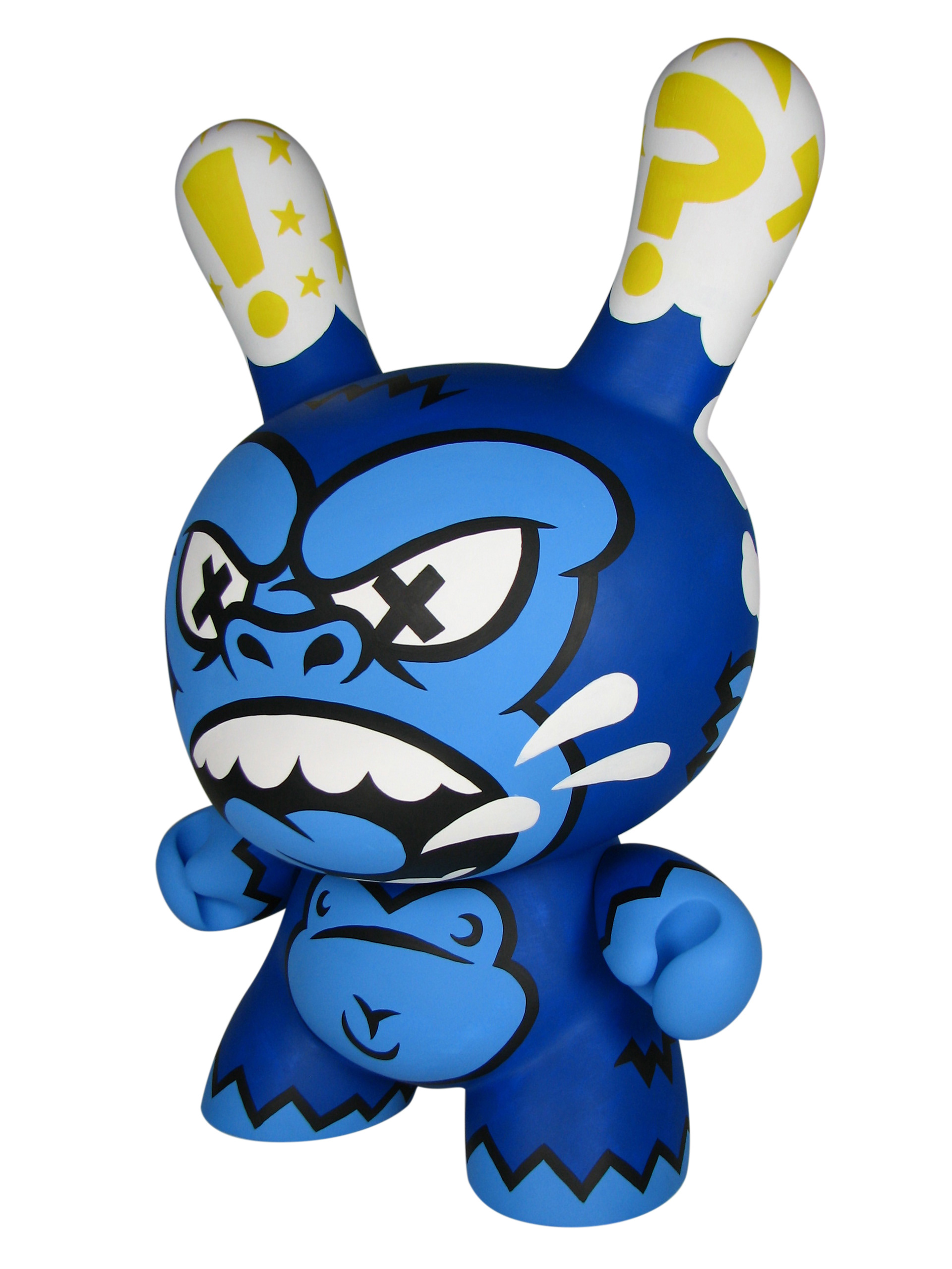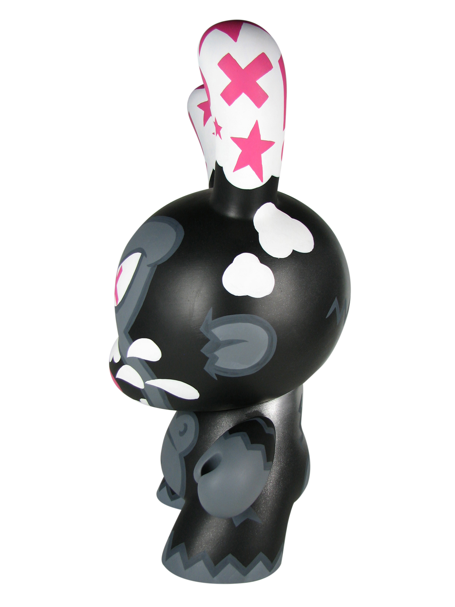 A series of 3 custom painted 20in Dunny's. "White" was for Kidrobot's 10yr Anniversary Auction. "Blue" was a private commission. "Black" is available for sale through my store.