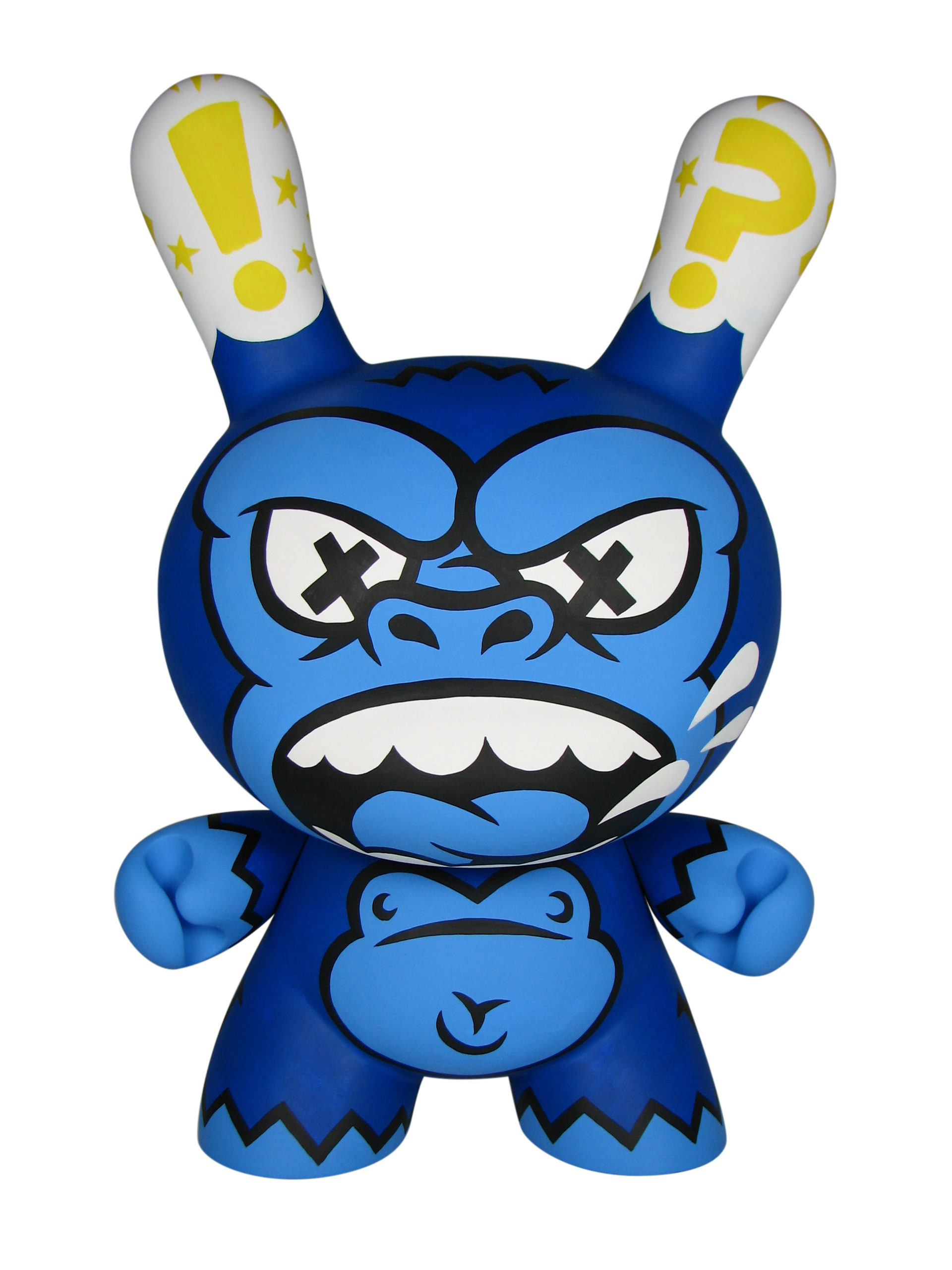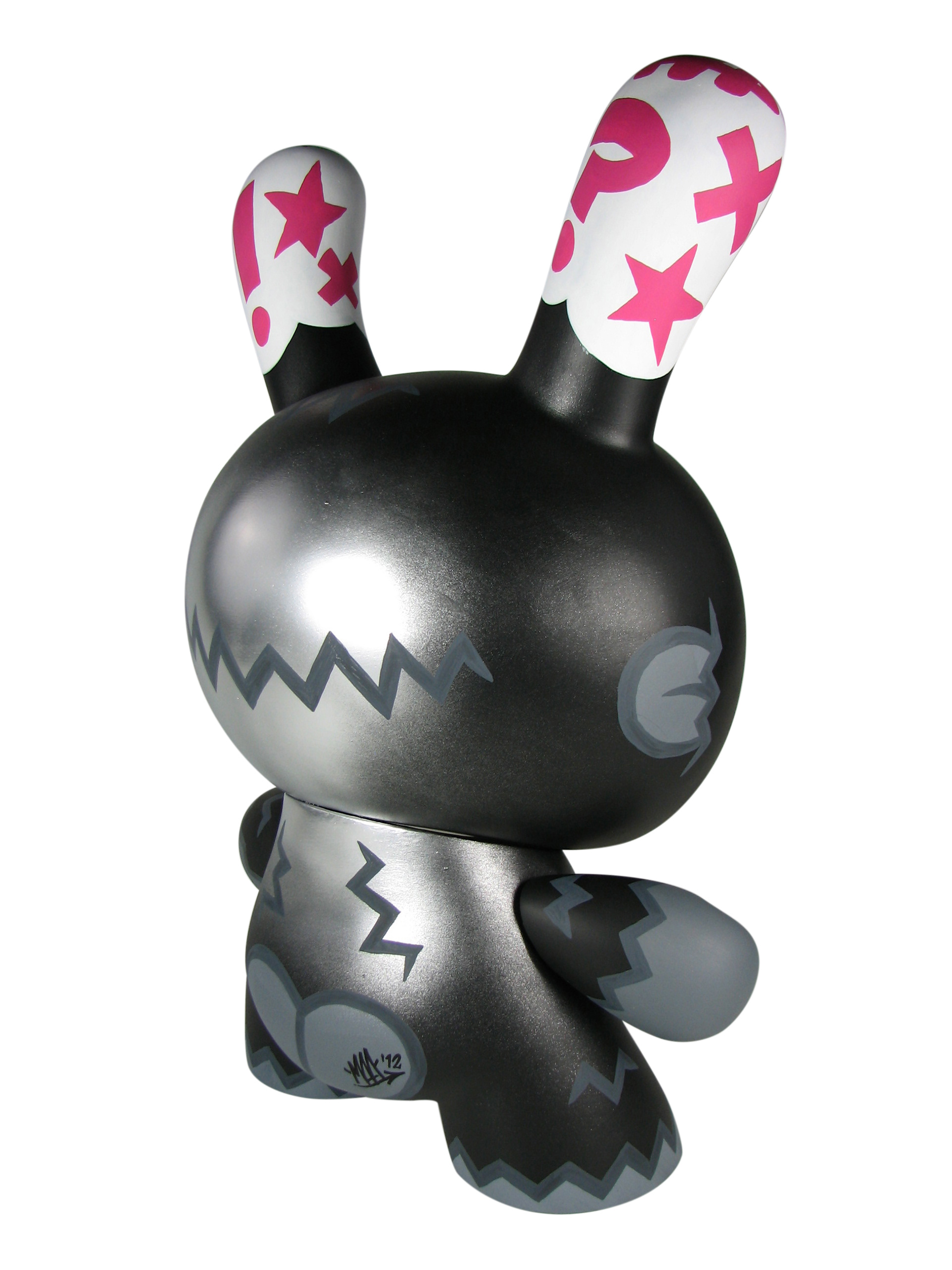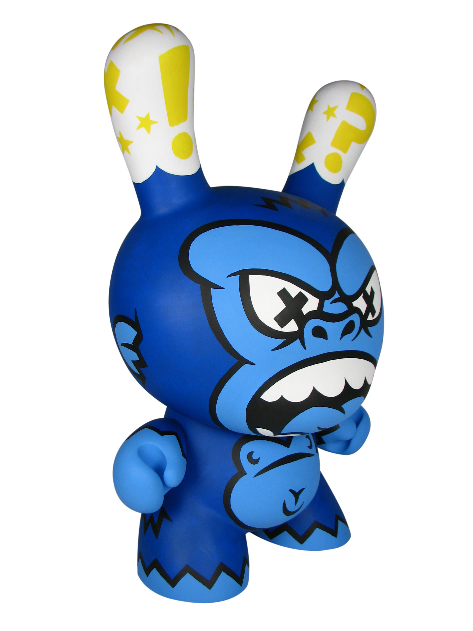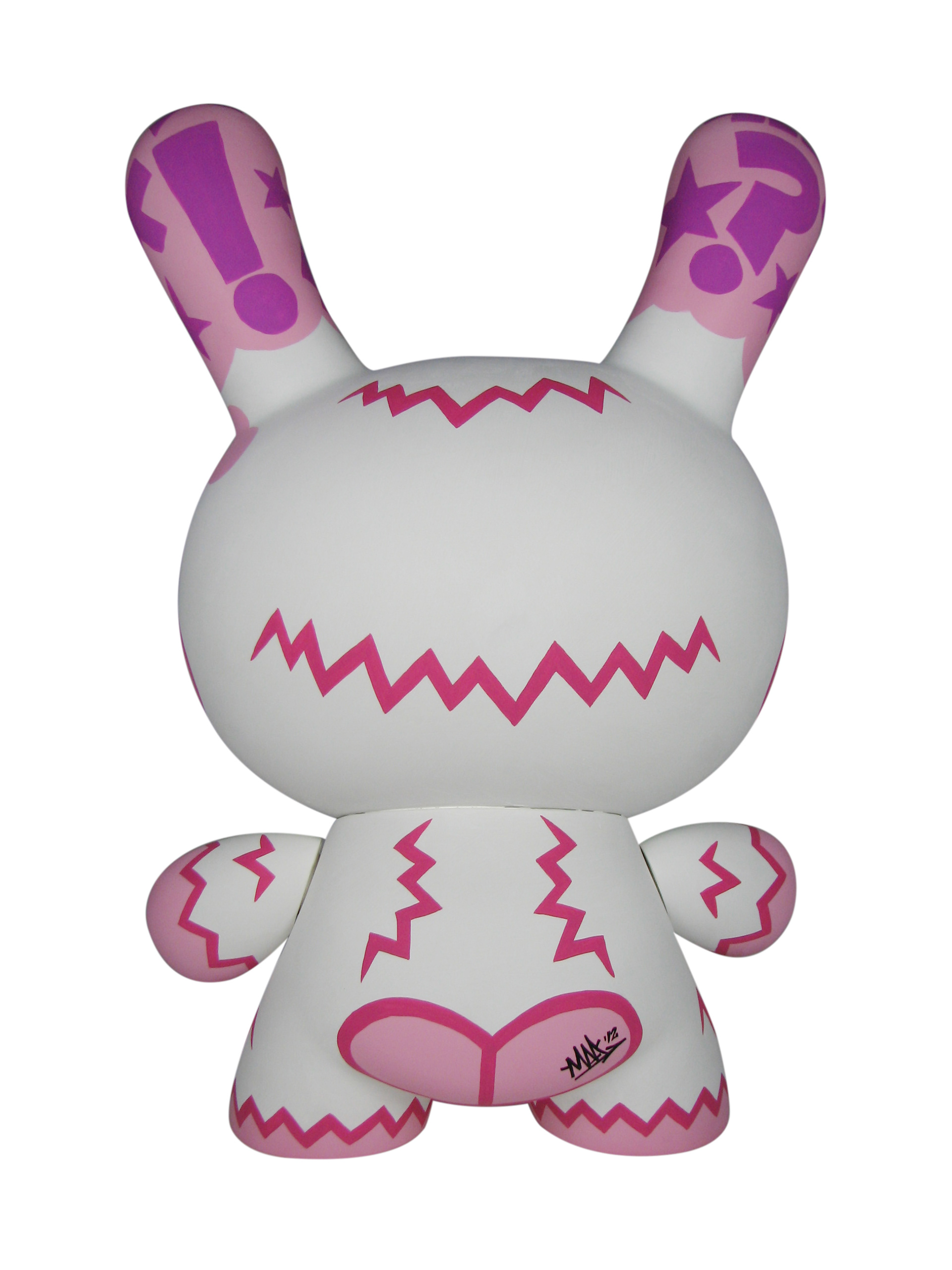A series of 3 custom painted 20in Dunny's. "White" was for Kidrobot's 10yr Anniversary Auction. "Blue" was a private commission. "Black" is available for sale through my store.