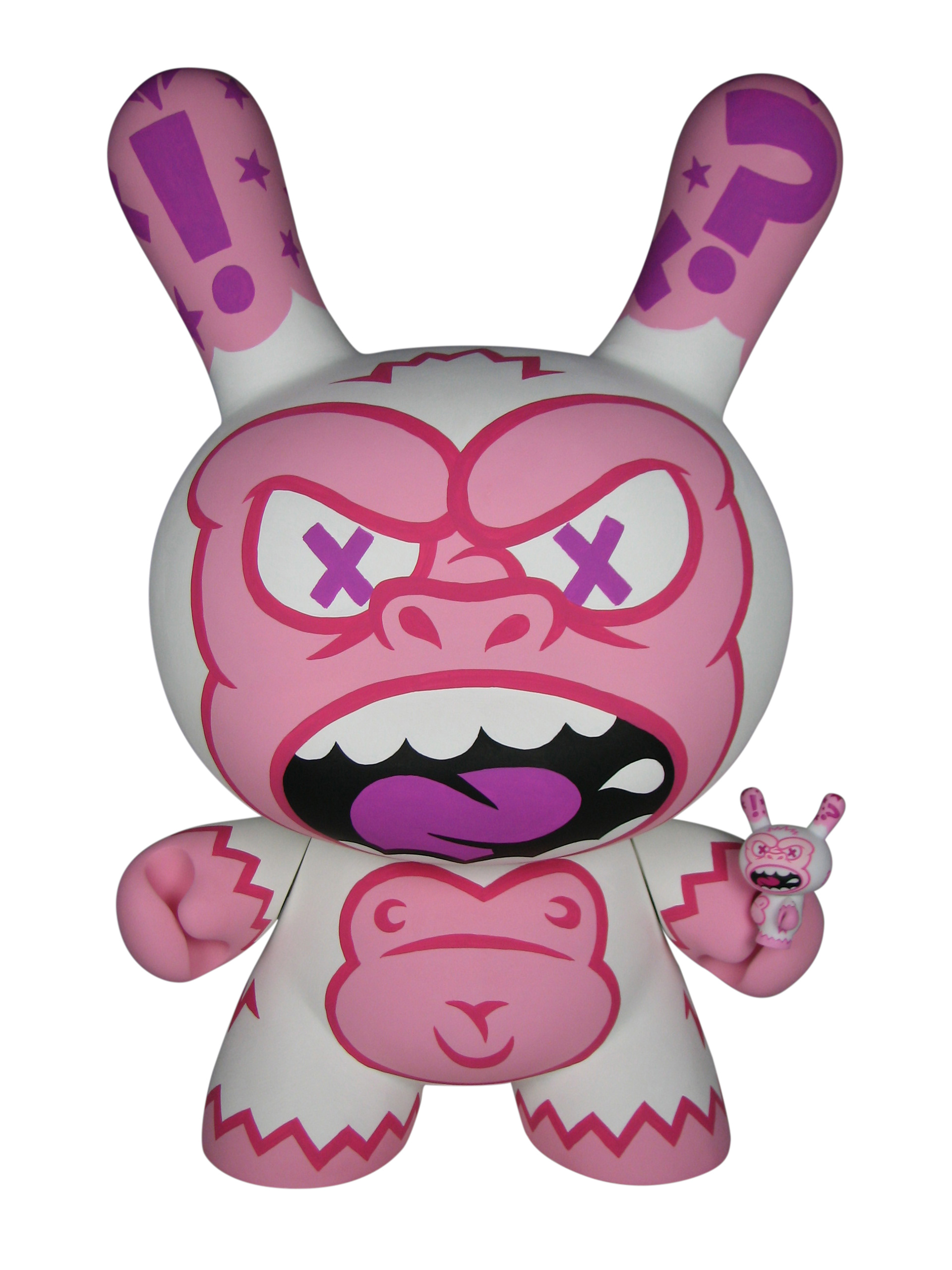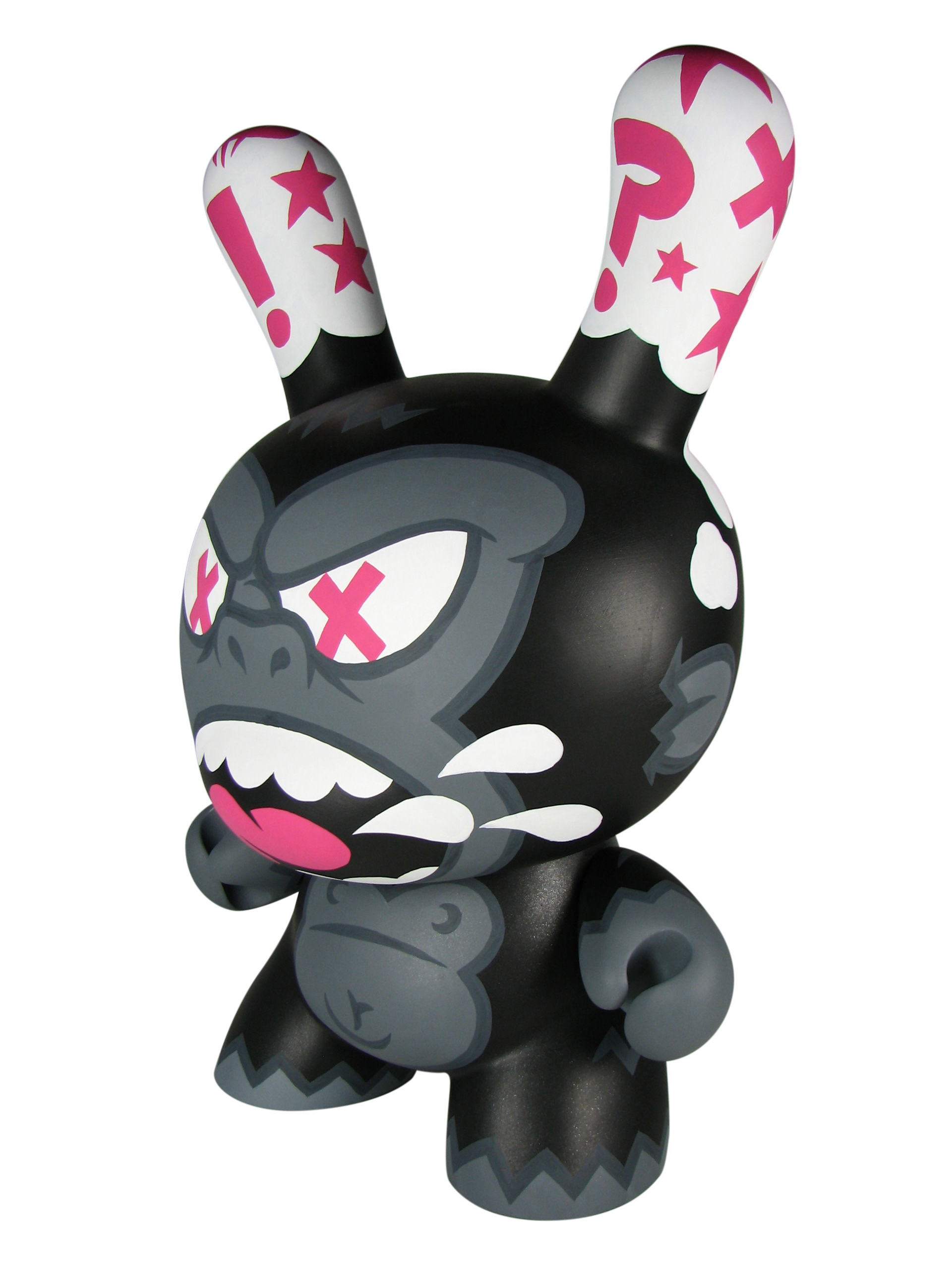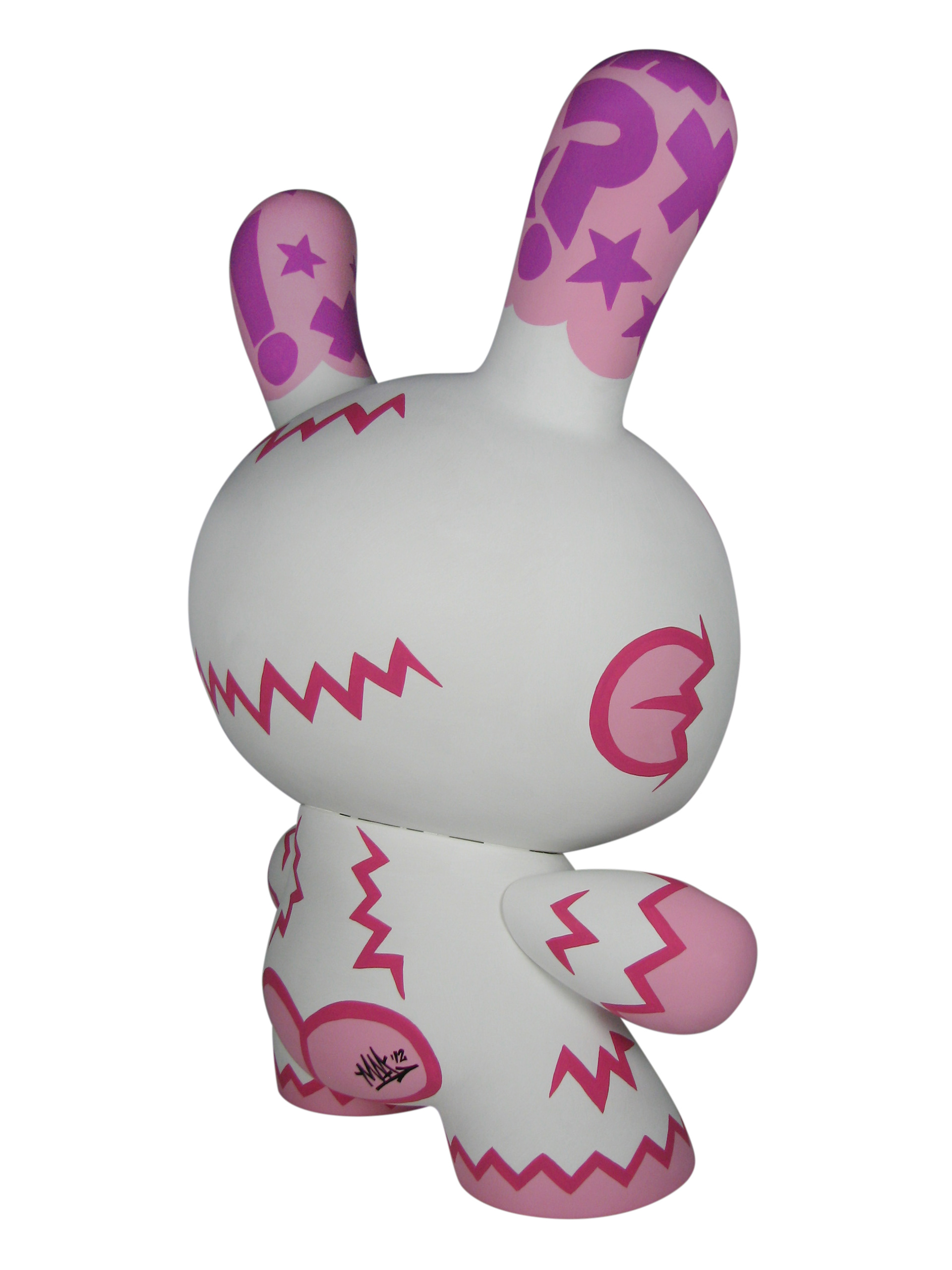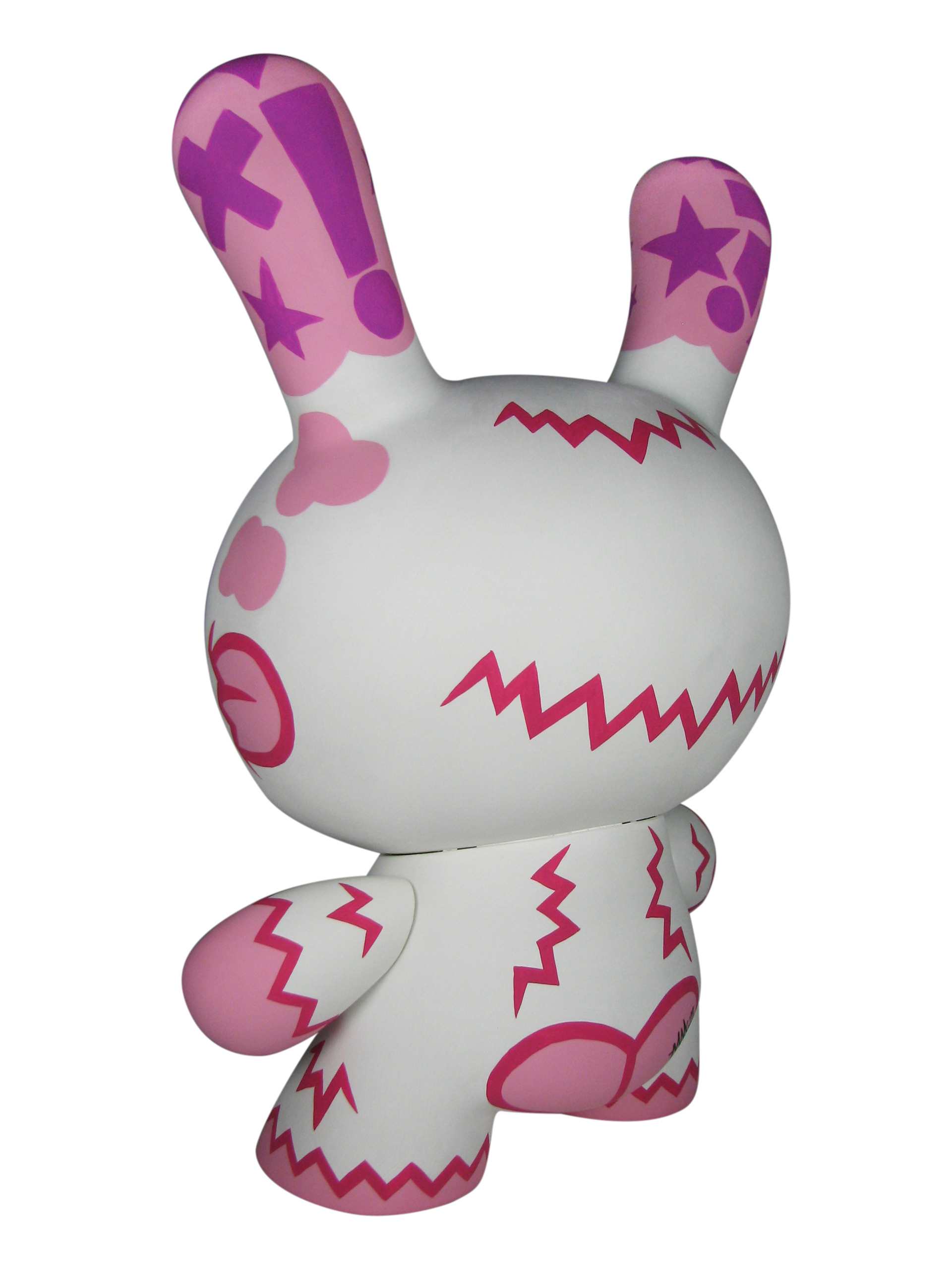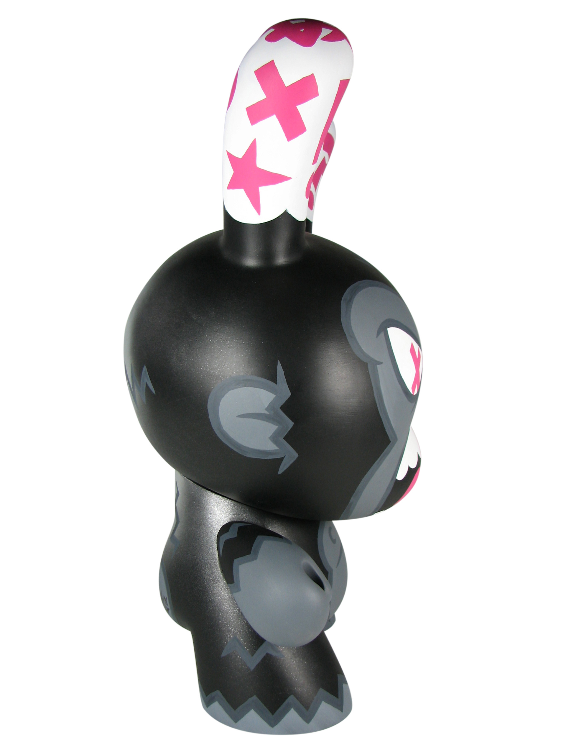 A series of 3 custom painted 20in Dunny's. "White" was for Kidrobot's 10yr Anniversary Auction. "Blue" was a private commission. "Black" is available for sale through my store.