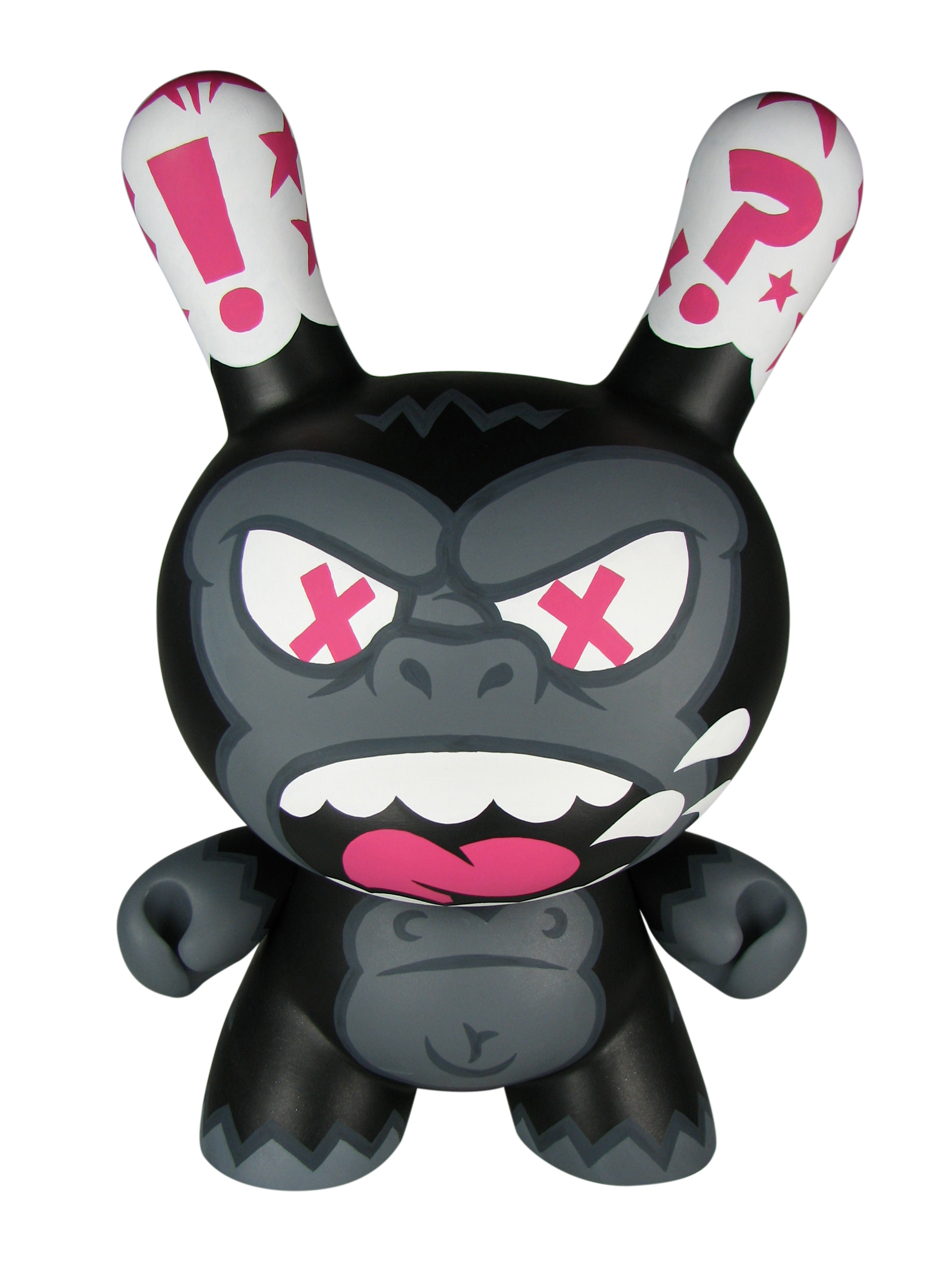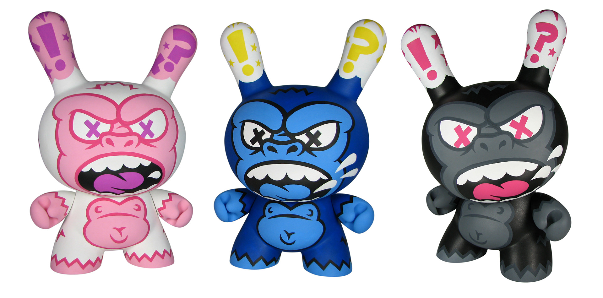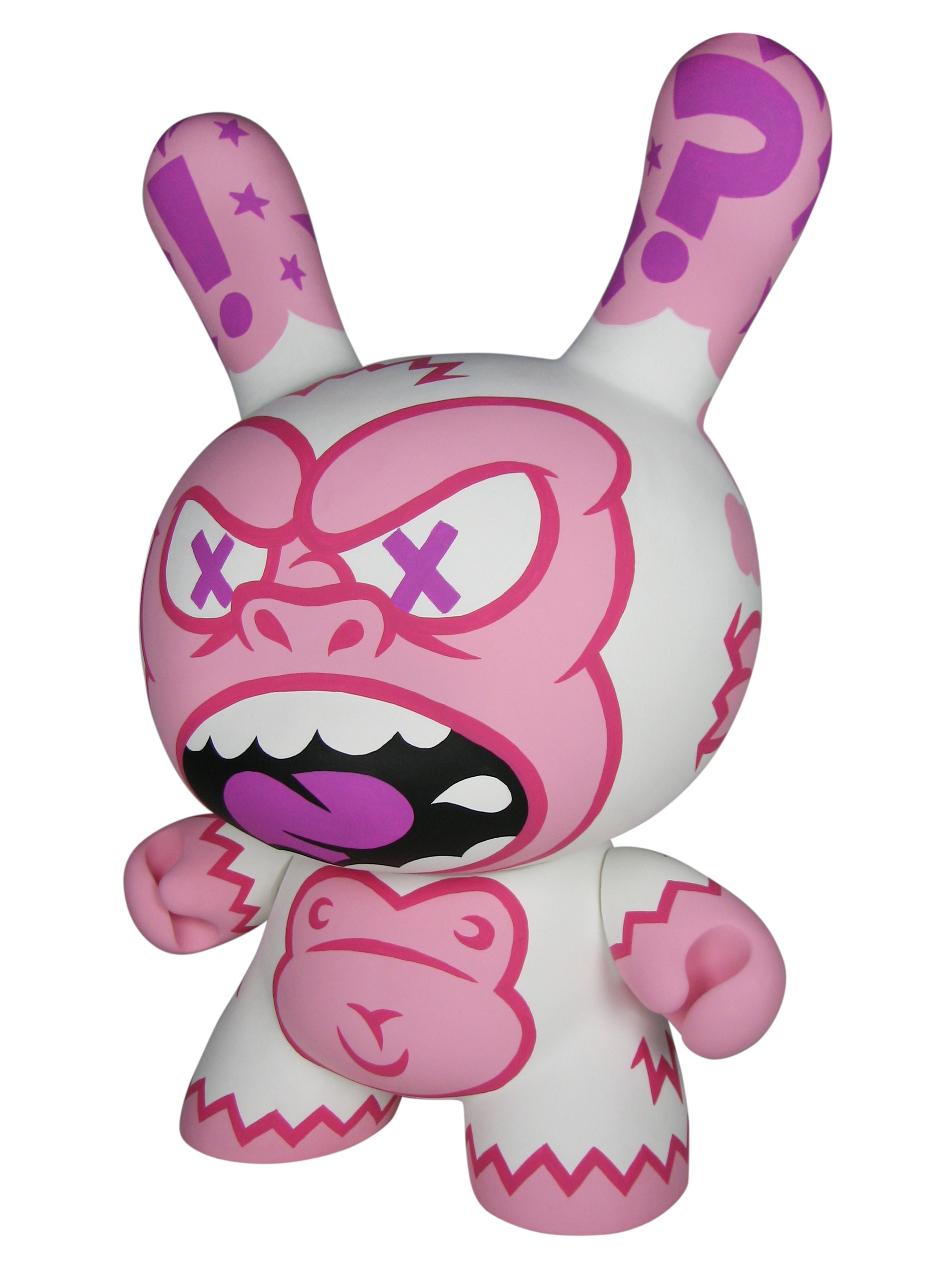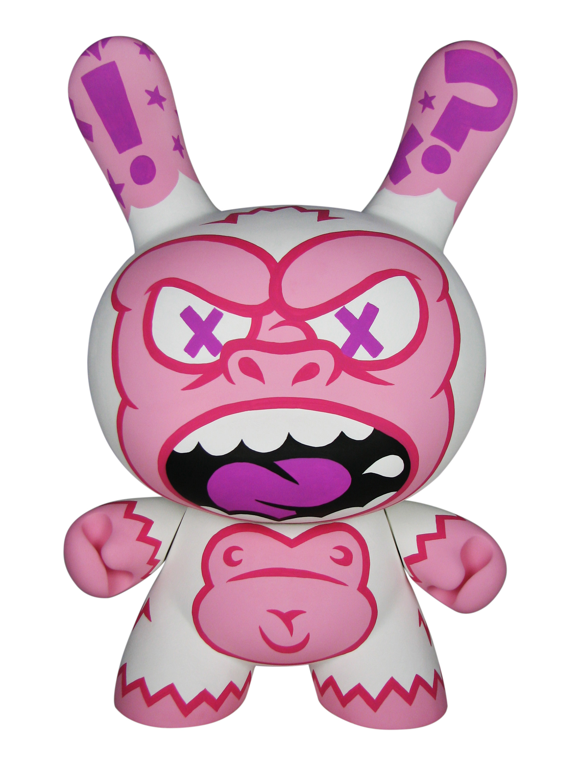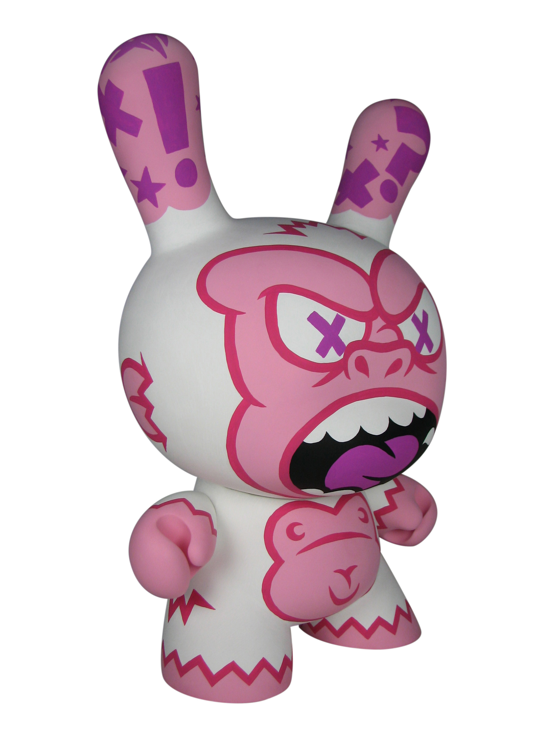A series of 3 custom painted 20in Dunny's. "White" was for Kidrobot's 10yr Anniversary Auction. "Blue" was a private commission. "Black" is available for sale through my store.