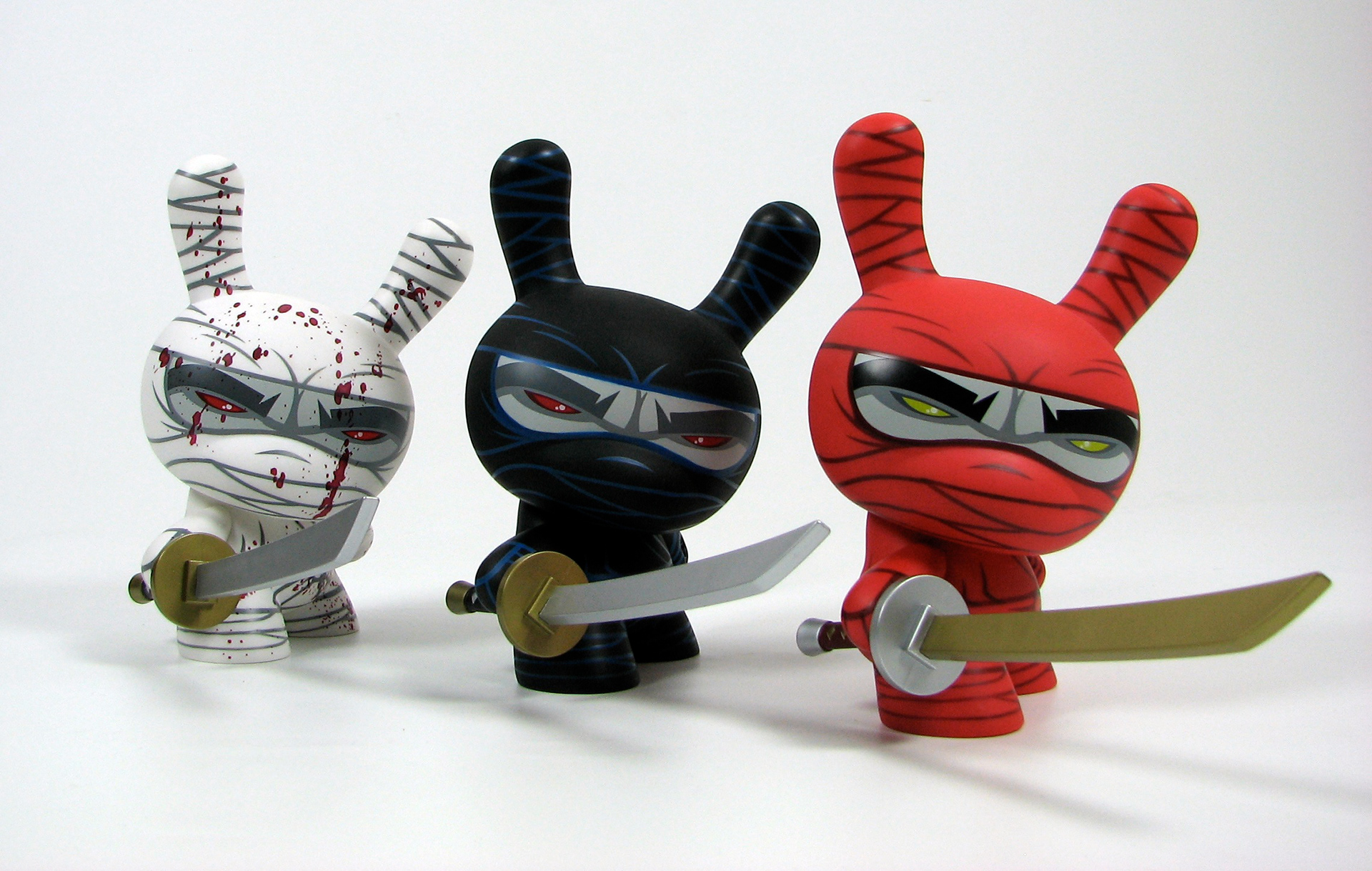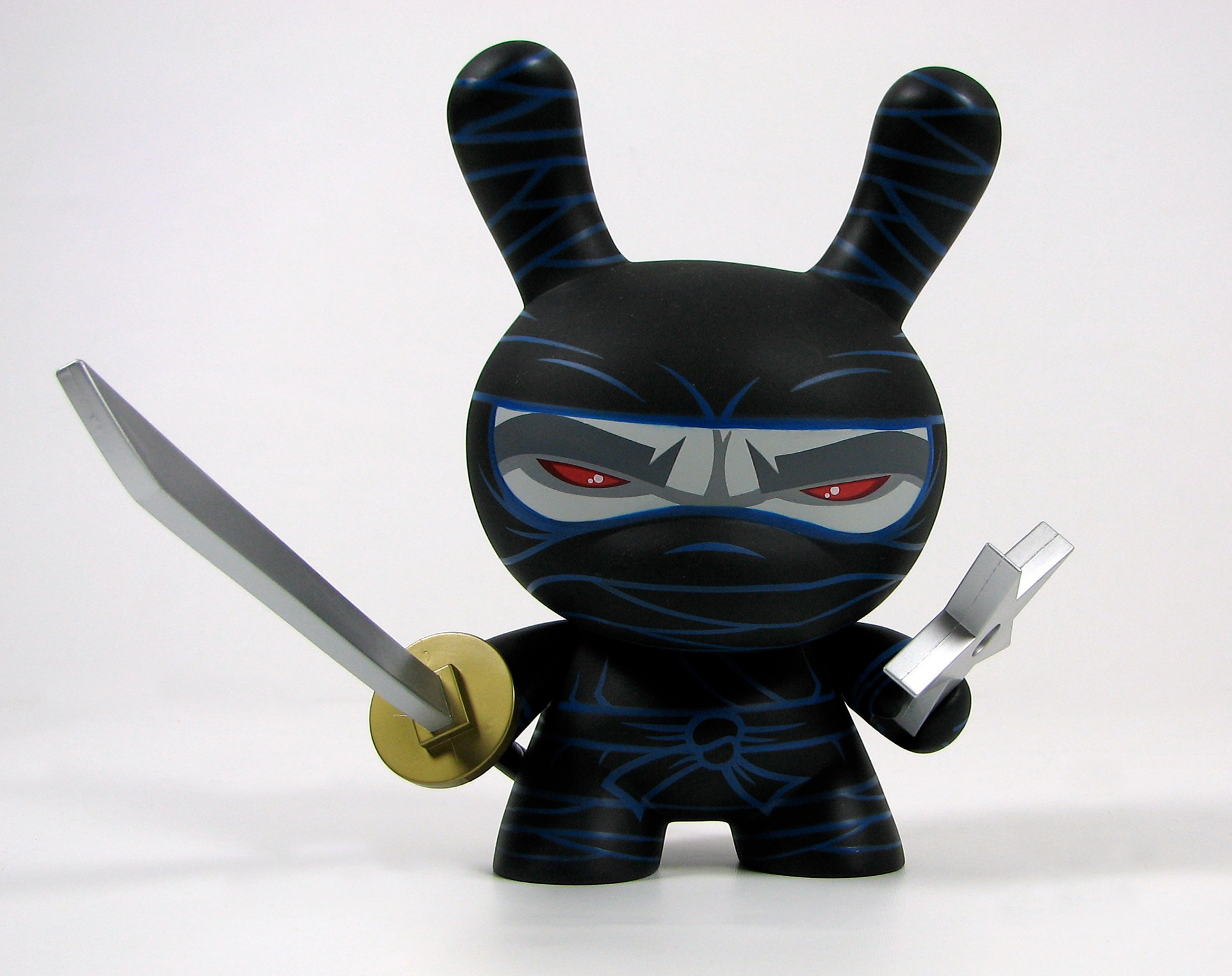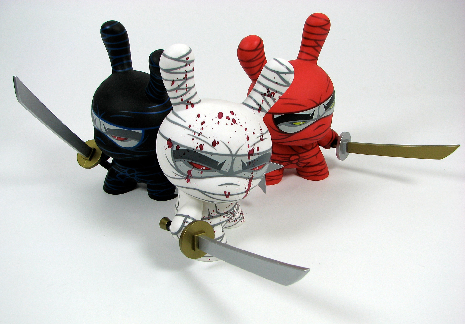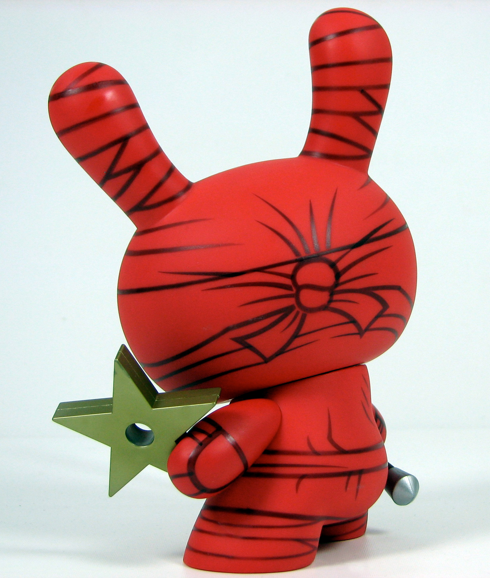 This was my very first 8" Dunny design released by Kidrobot back in 2006. This triad of stealth ninja's was limited to 1500 pcs of the white (main edition), 500 pcs of the red (special edition), and only 150 pcs of the black (chase edition). Each came with a sword and throwing star and custom 4 color package design.