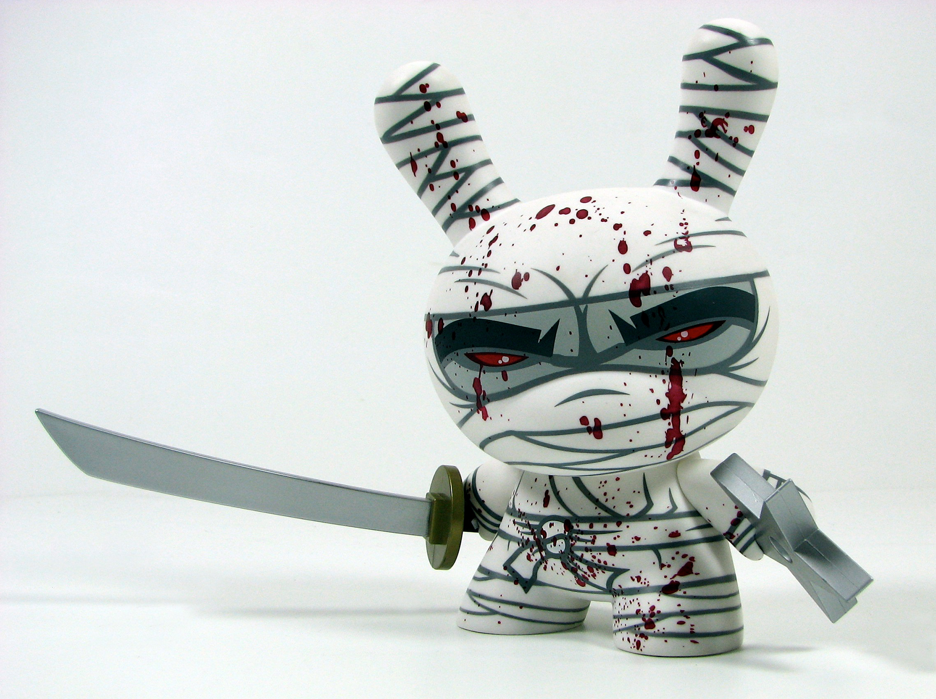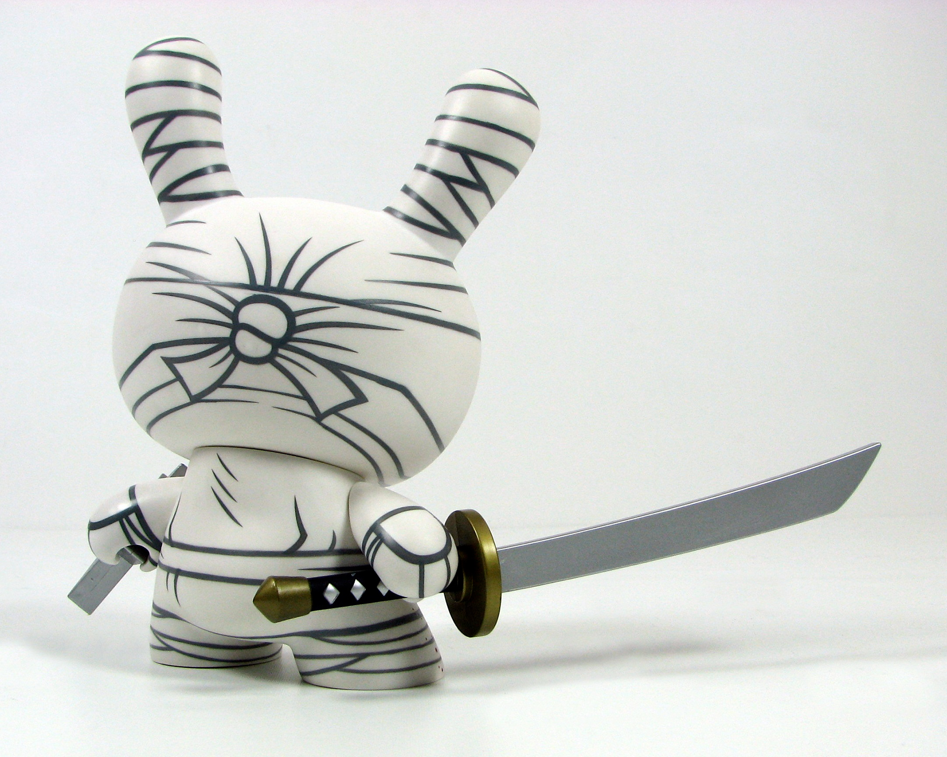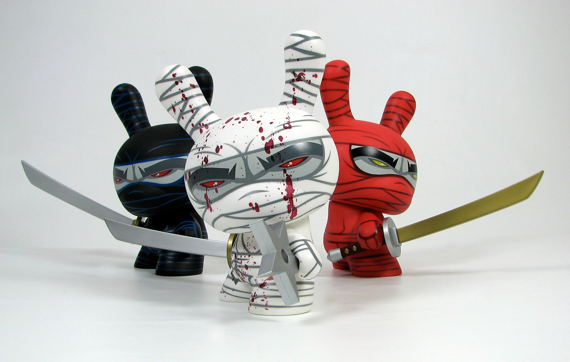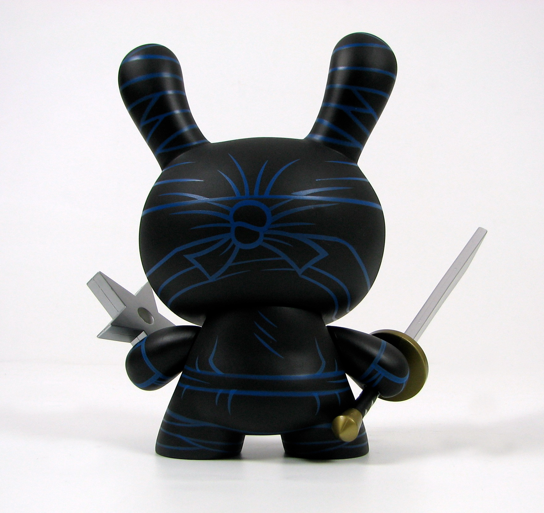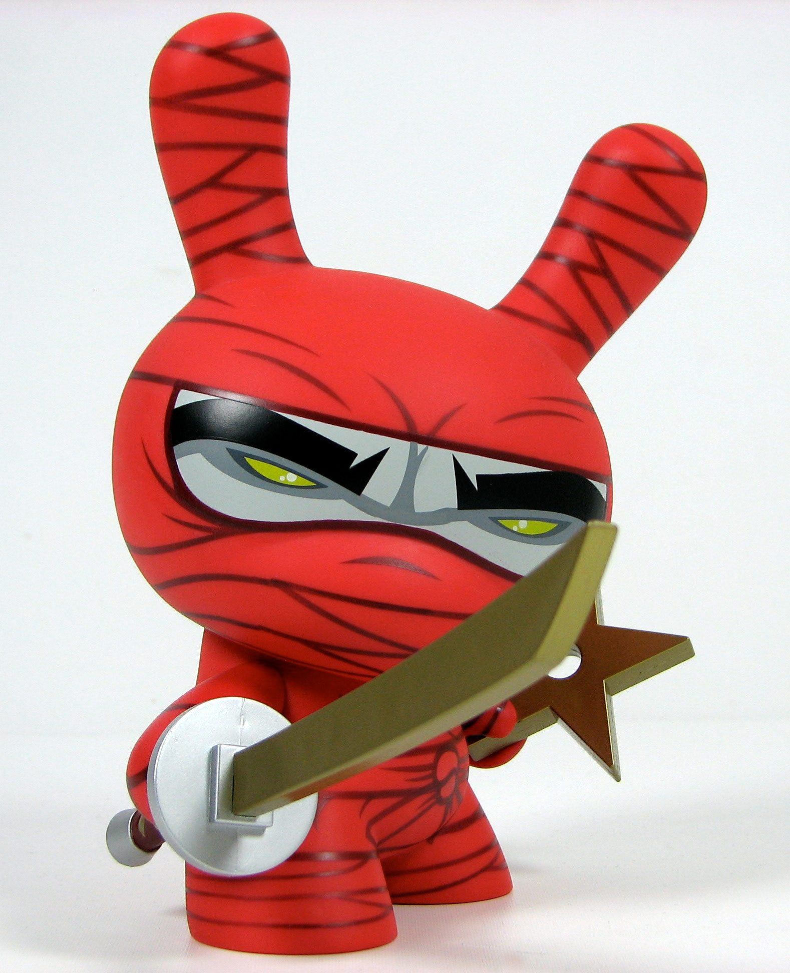 This was my very first 8" Dunny design released by Kidrobot back in 2006. This triad of stealth ninja's was limited to 1500 pcs of the white (main edition), 500 pcs of the red (special edition), and only 150 pcs of the black (chase edition). Each came with a sword and throwing star and custom 4 color package design.