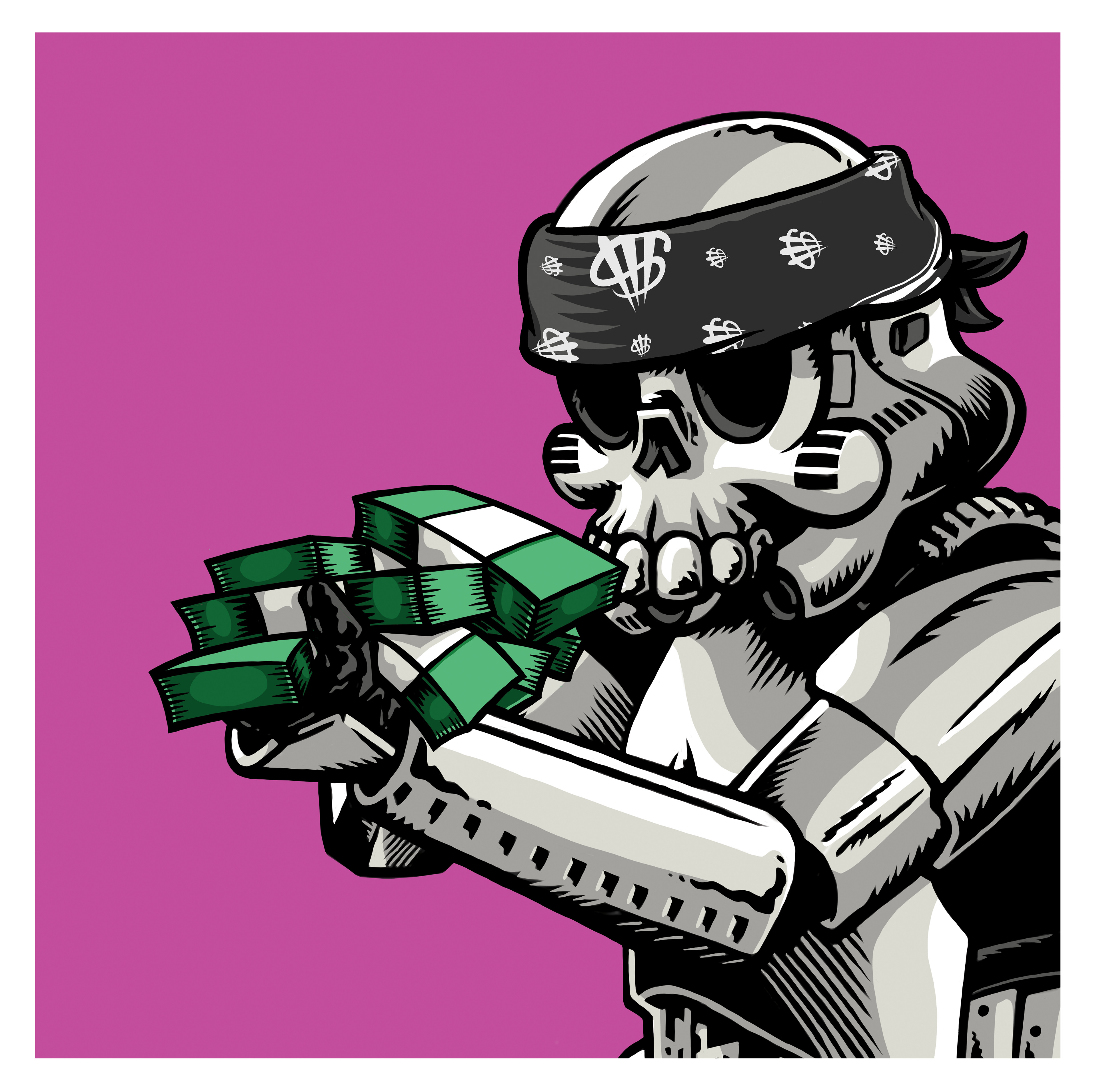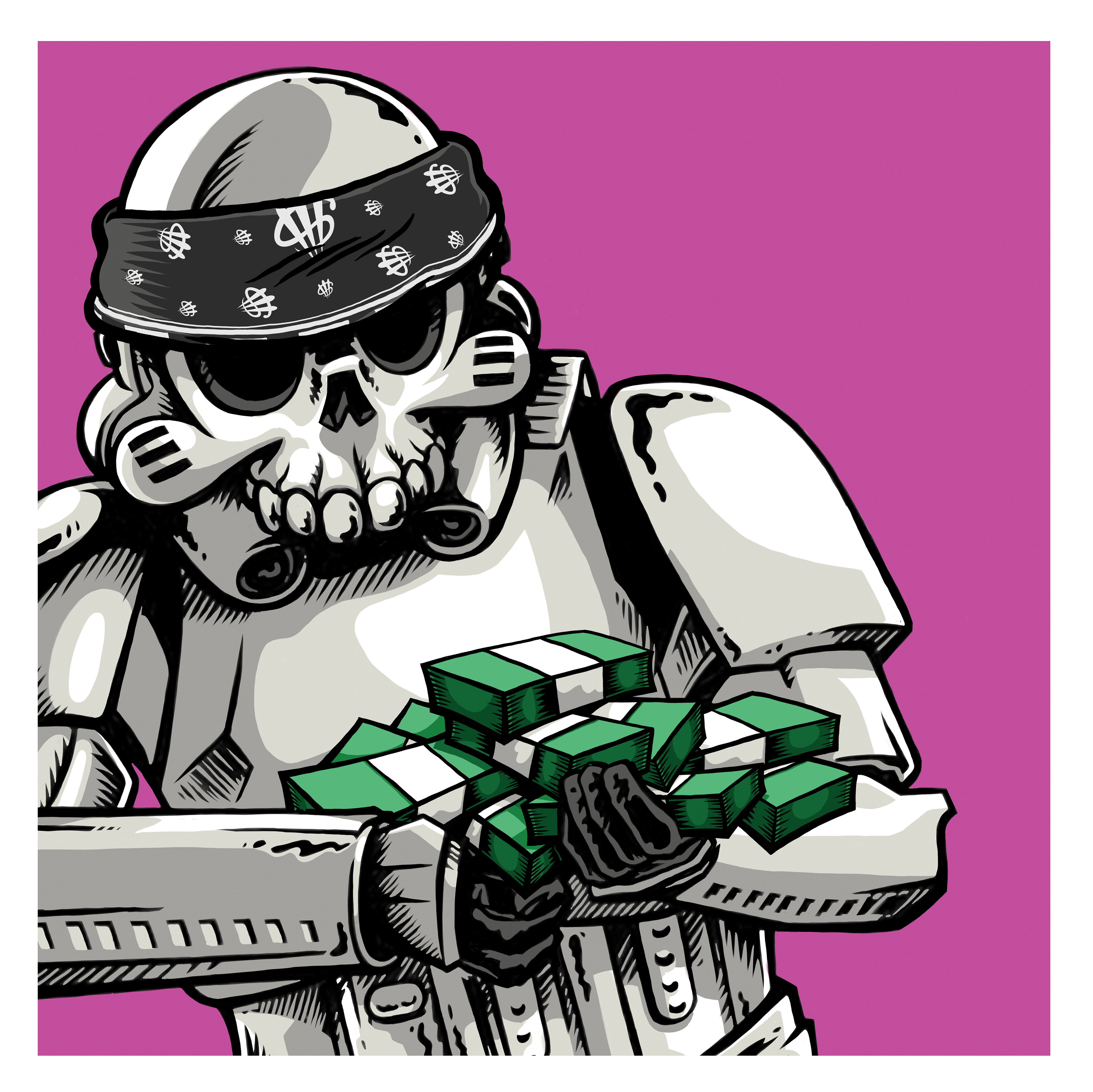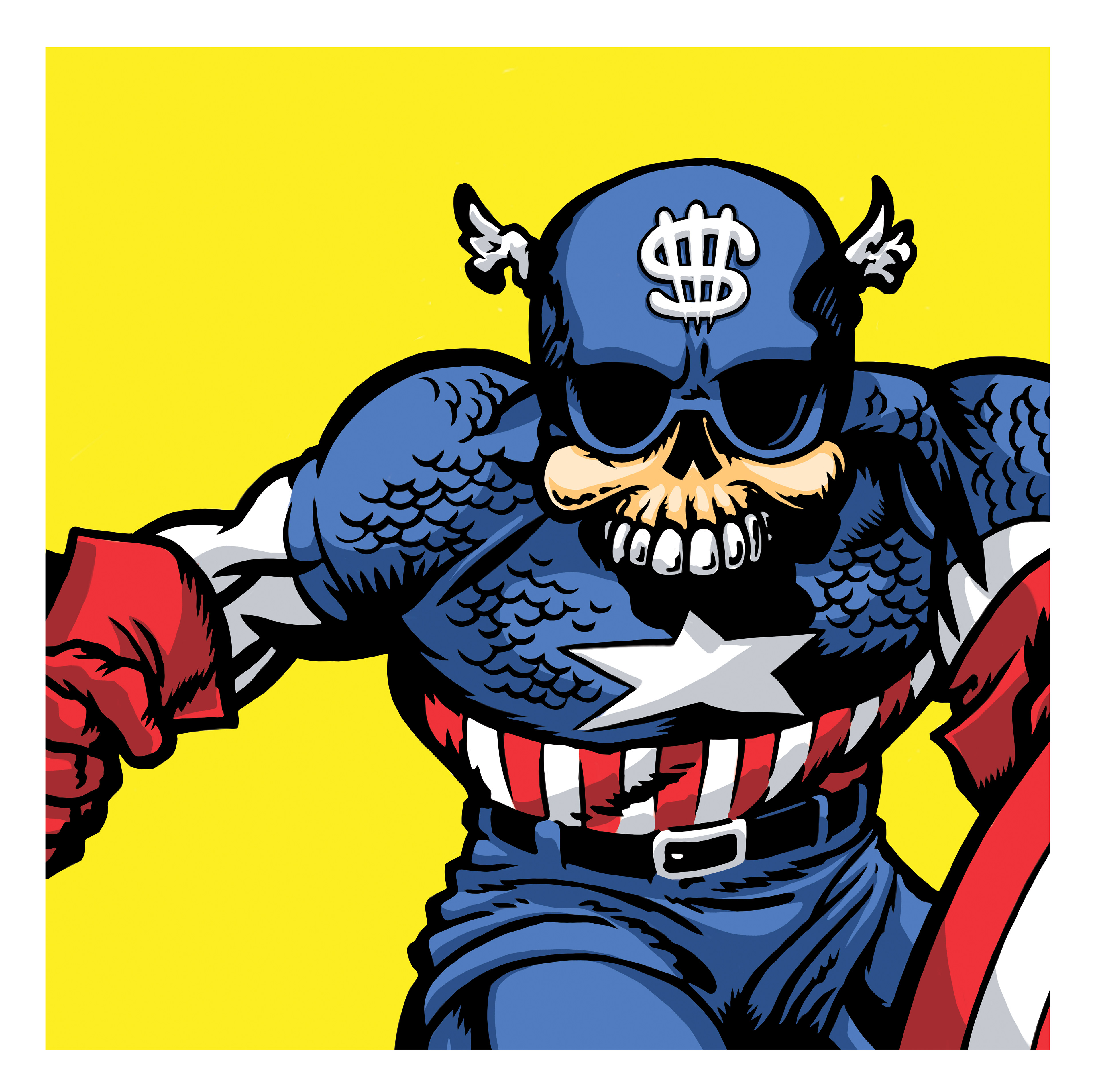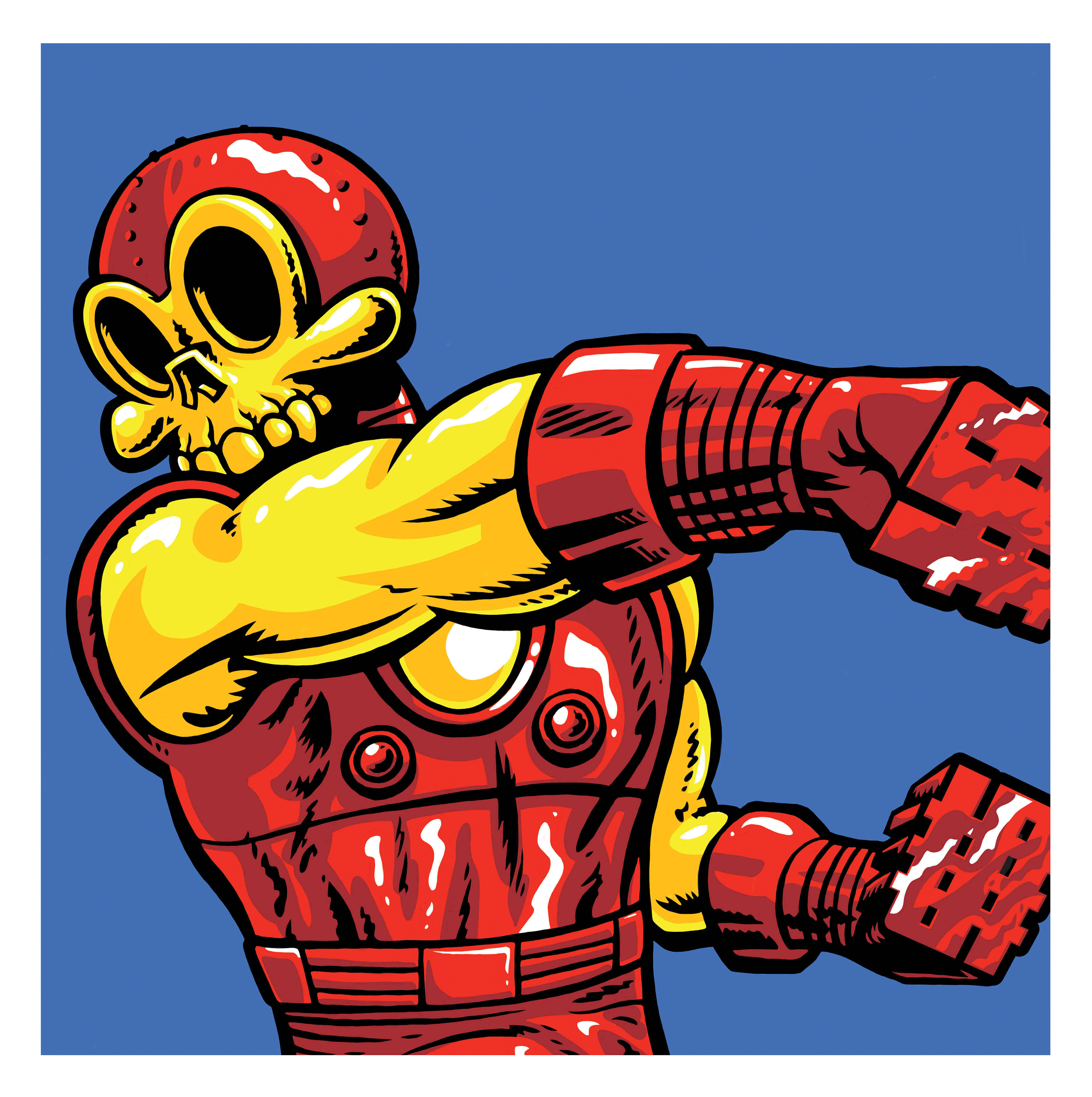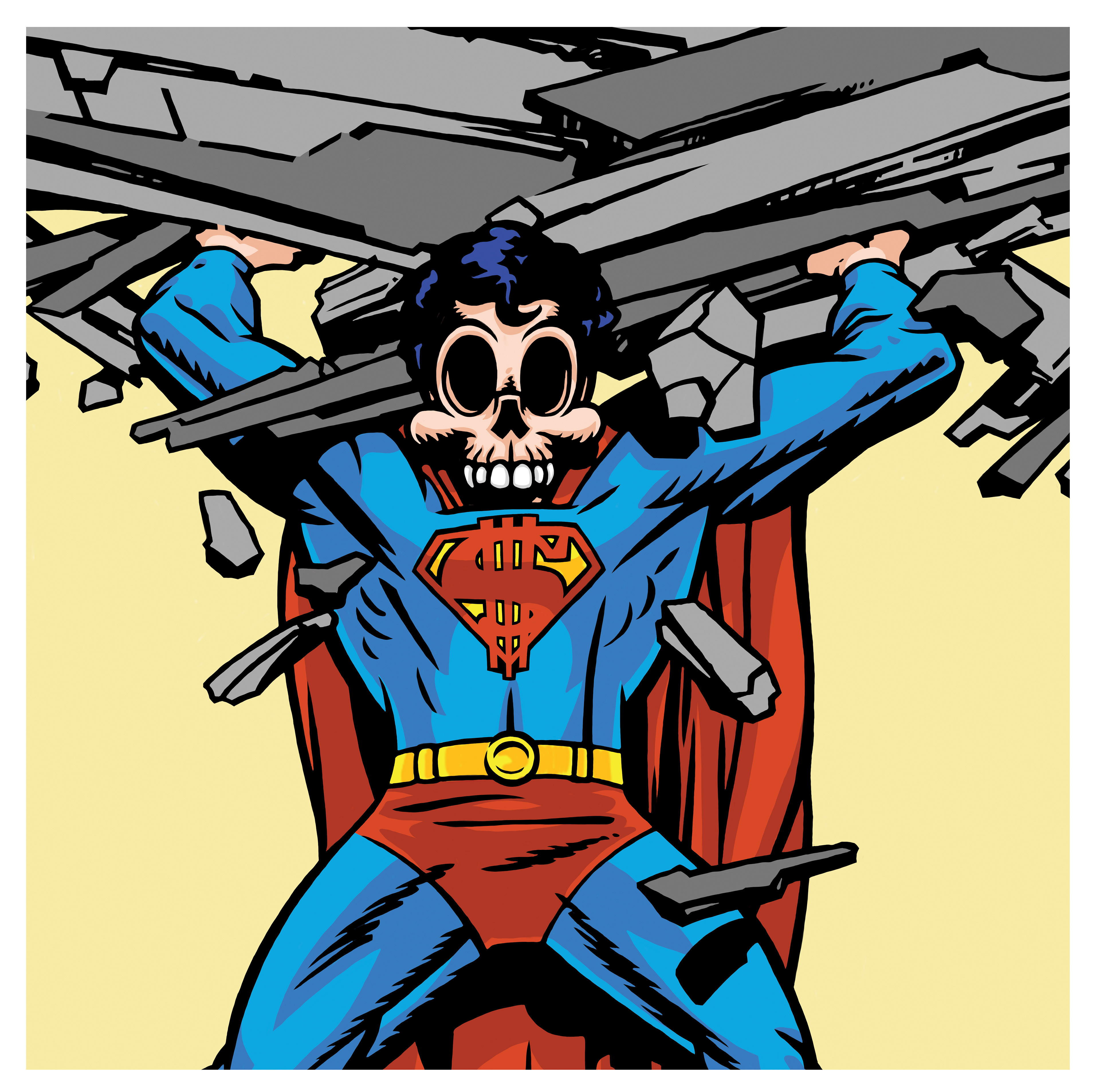 The “Modern Hero” character in my work is just a skeleton of what he was in his glory days. Forever doomed with the burden of chasing “Big Money” he’ll never be able to rest. Spawned during an age of creativity and imagination where he thrived, but now stuck living in an age of remakes and stagnation.