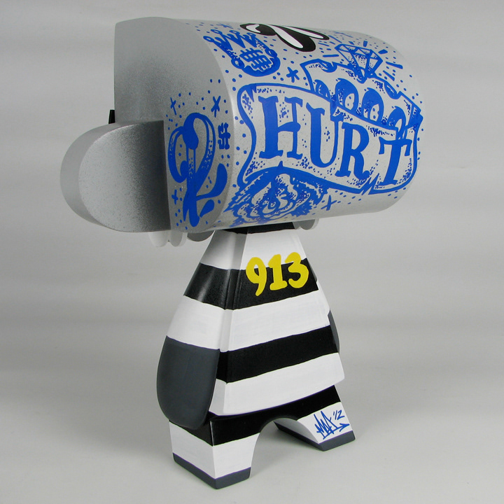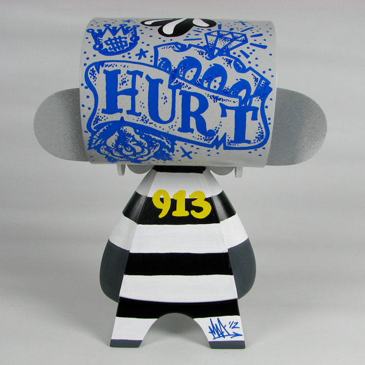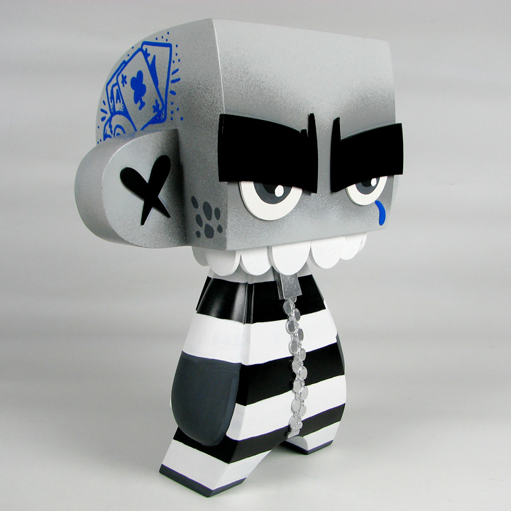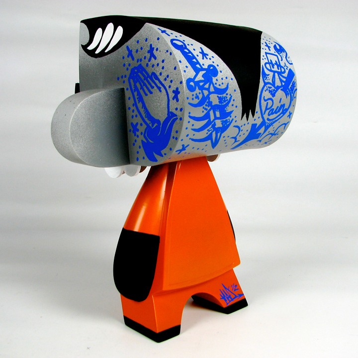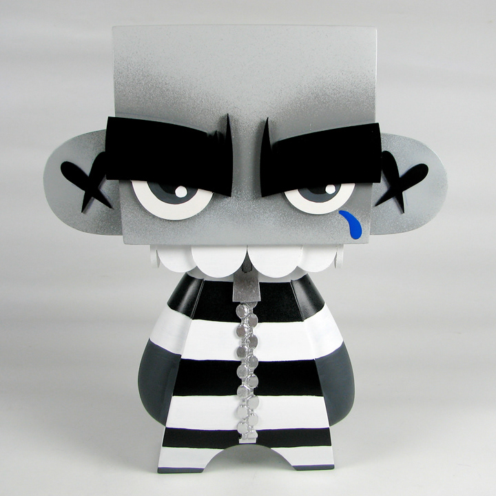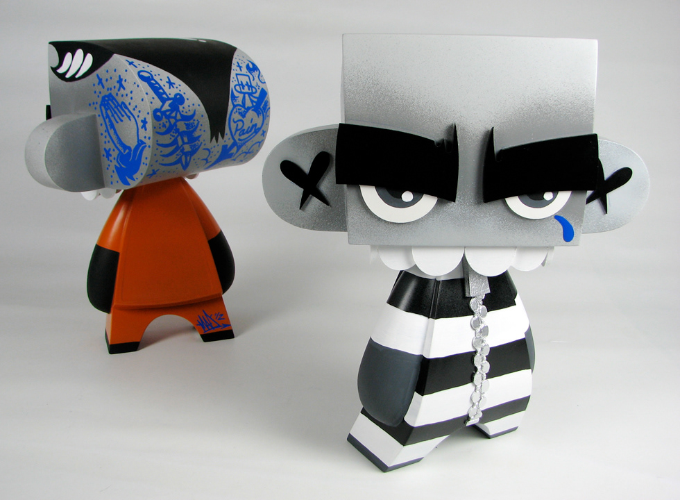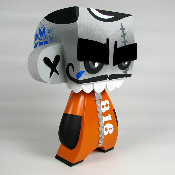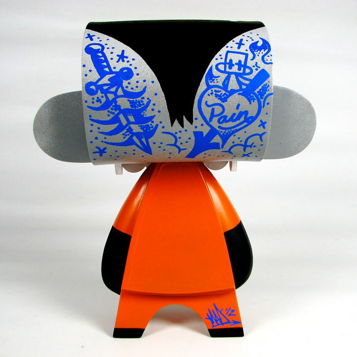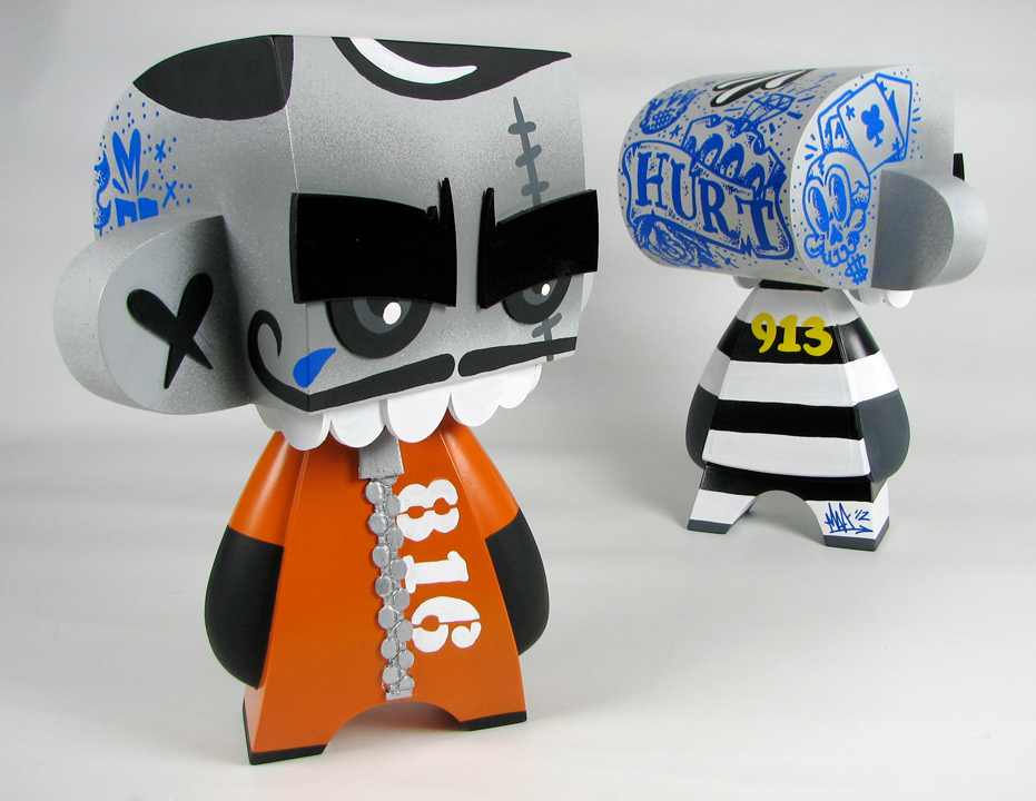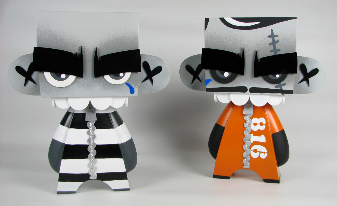 With the release of my latest vinyl figure MORK, I wanted to see how I could take the concept onto my MADL platform. I used the recent NYCC 2011 color variants of MORK (Prisoner 816 & 913) as my reference point. I like how with the use of a few added elements the MADL shape starts to take on the same form as the MORK figure. Each piece is hand painted with a variety of media.