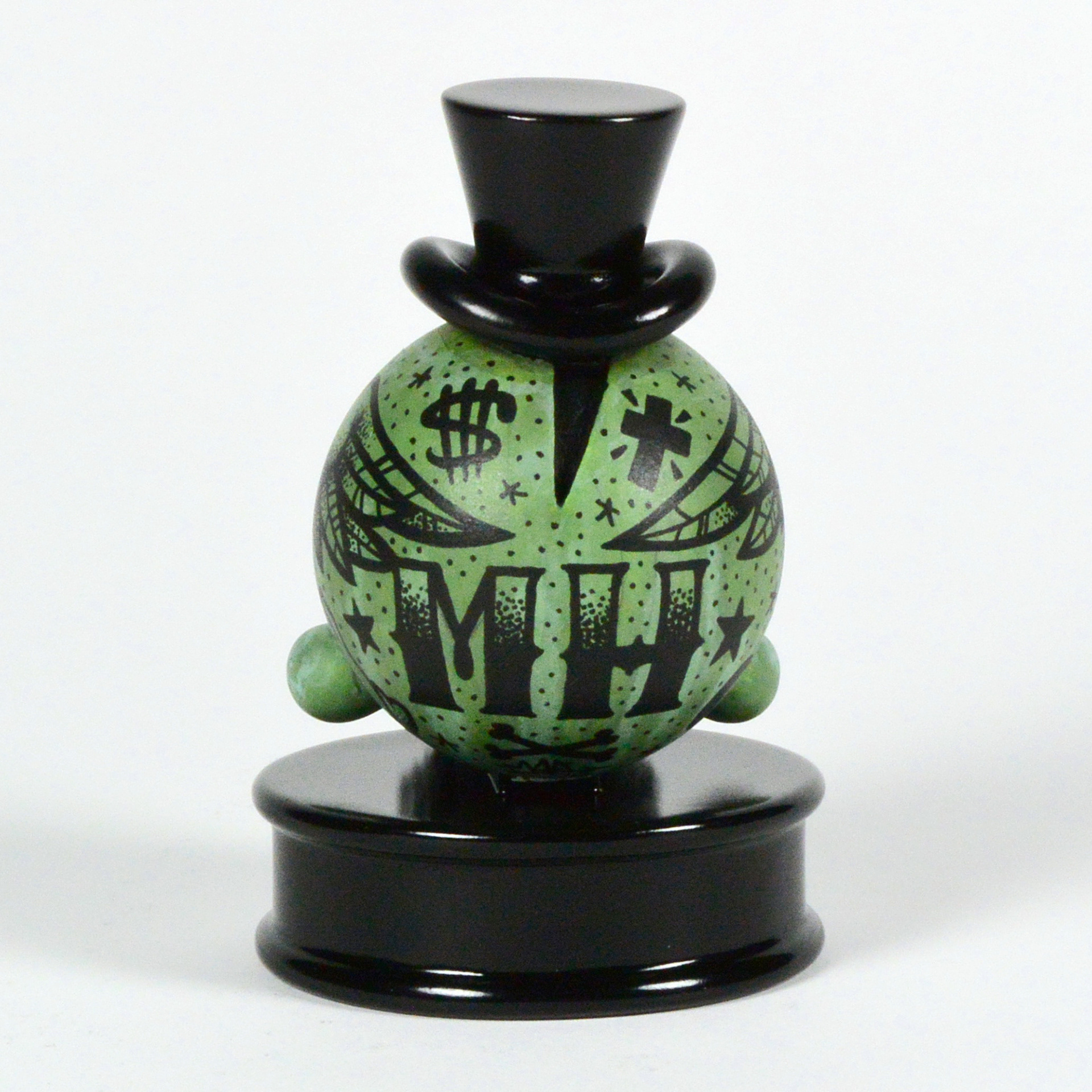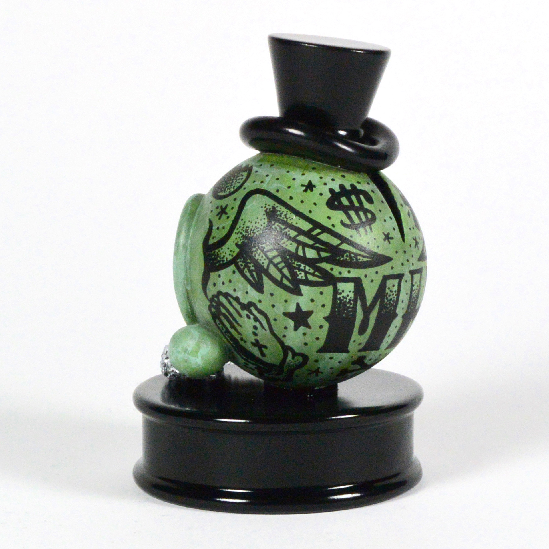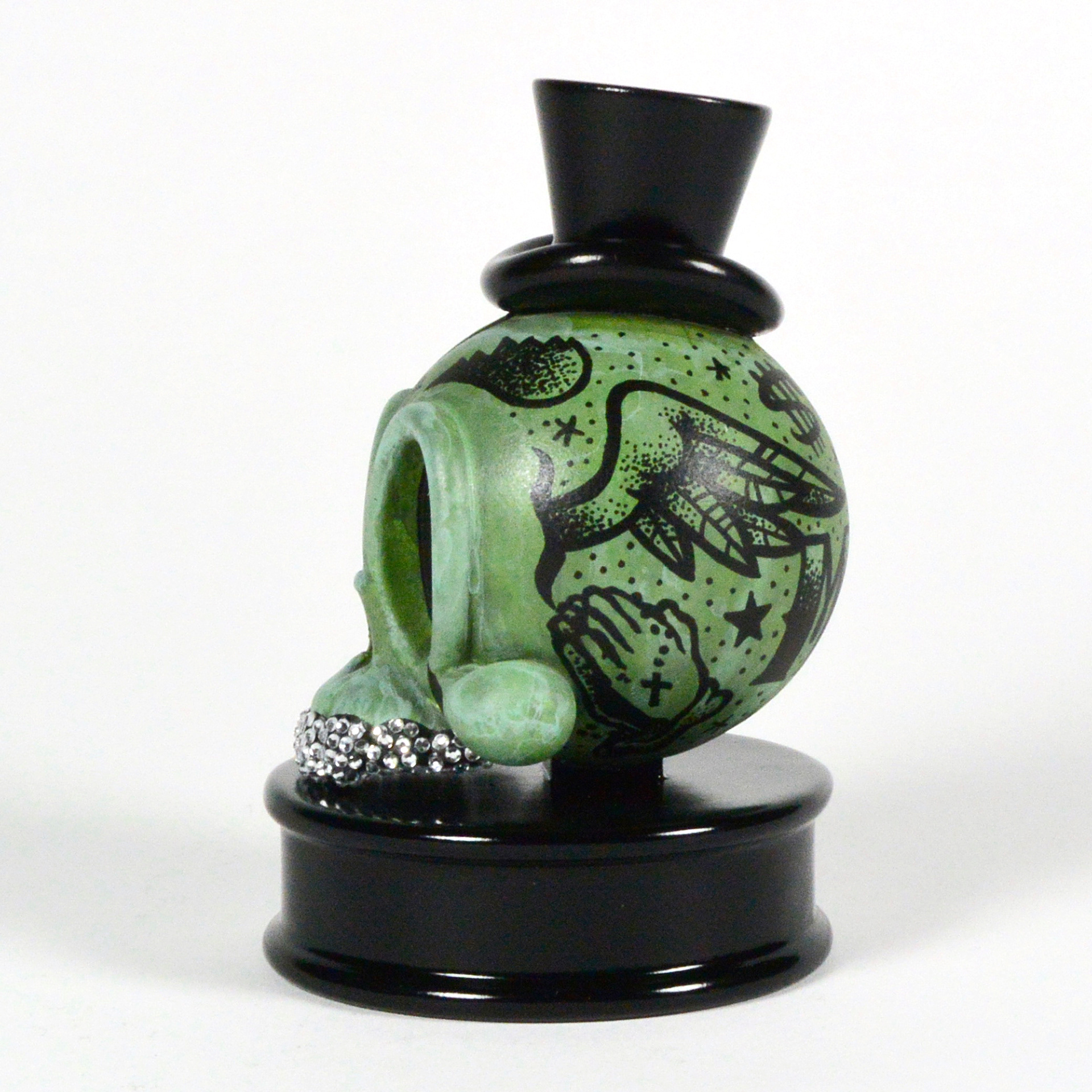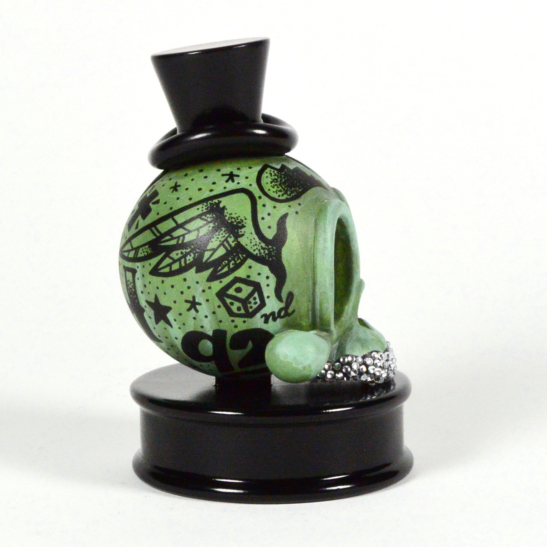 This custom 4.5in resin Modern Hero Skull comes "blinged" out with a smile you can't resist. It features hand painted weathering with inked on tattoo details and a whole bunch of hand placed diamonds. (fake of course)